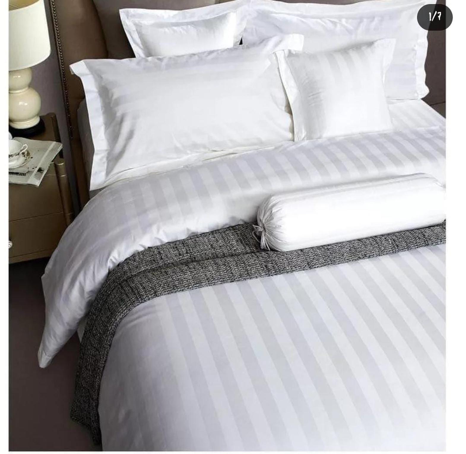 Indulge in ultimate comfort with this premium 10-piece white striped duvet set, crafted to bring a touch of sophistication to your bedroom. Made from high-quality, breathable fabric, this set offers a soft, smooth texture that enhances relaxation while ensuring durability for long-lasting use. The subtle striped pattern adds a refined, hotel-inspired elegance, making it perfect for both modern and classic interiors. Complete with matching pillowcases and additional bedding essentials, this set transforms your sleeping space into a serene retreat, promising restful nights in pure luxury.