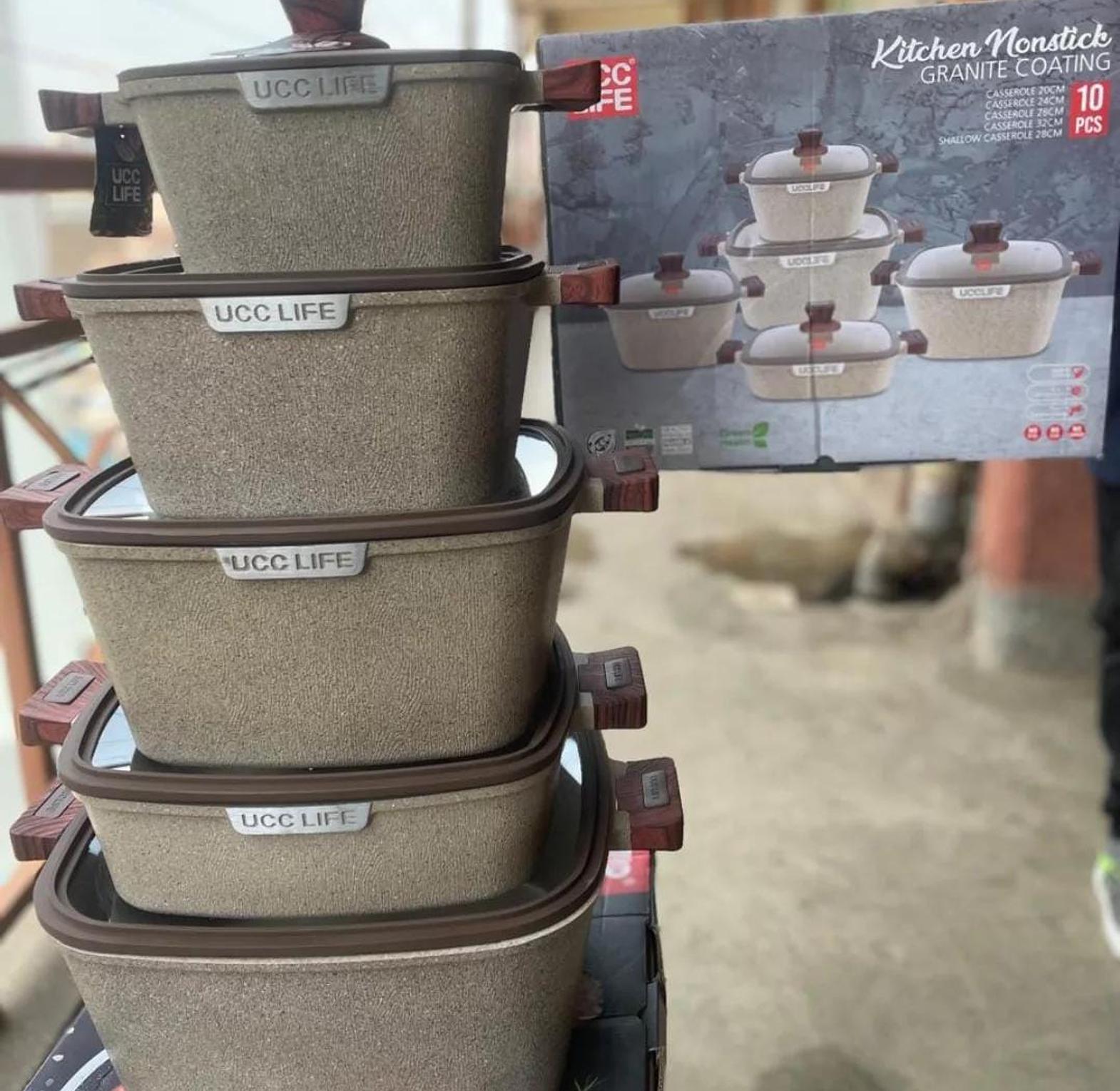 Cook with ease and style using the 10pcs Square UCC Life Cookware Set, designed for both everyday use and special occasions. Crafted from durable materials, this set features square-shaped pots and pans that not only provide a unique aesthetic but also ensure even heat distribution for efficient cooking. Whether you're sautéing, frying, or simmering, the non-stick coating allows for easy food release and effortless cleaning. With ergonomic handles and tempered glass lids, the set combines functionality and elegance, making it an ideal addition to any kitchen looking to blend modern design with superior performance.