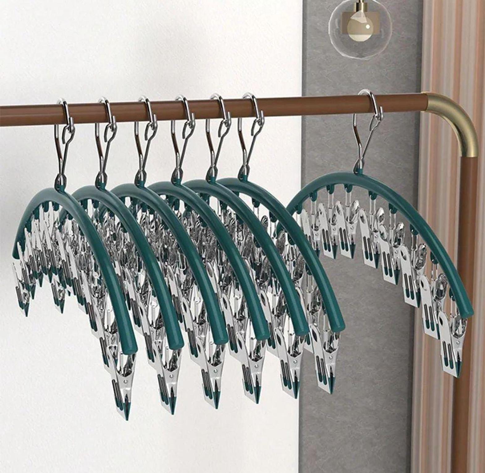 This 10-pegs stainless steel clothes drying hanger offers a practical and space-saving solution for drying clothes indoors or outdoors. Made from high-quality, rust-resistant stainless steel, it ensures durability and strength, even with frequent use. Each peg is designed to securely hold garments of various sizes, while the compact structure allows for easy storage when not in use. Perfect for apartments or small homes, this hanger can be conveniently hung on a rod, hook, or even a balcony rail, offering a reliable and efficient way to air dry your laundry while maintaining a neat, organized space.