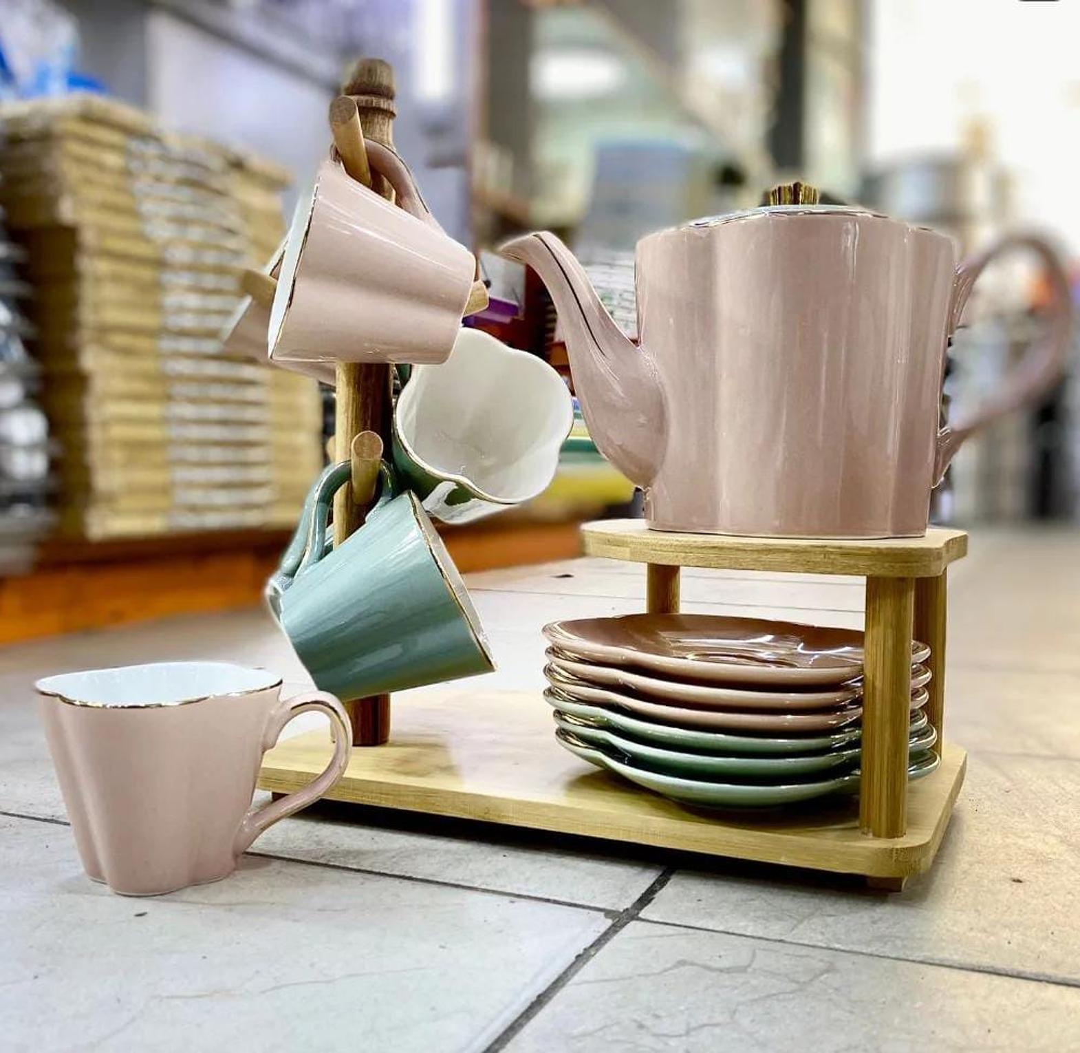 Elevate your tea-time experience with this exquisite 14-piece ceramic tea set, crafted for those who appreciate both beauty and functionality. Featuring a teapot, cups, saucers, and other matching accessories, this set exudes elegance with its smooth, high-quality ceramic finish. Designed to retain heat for the perfect brew, each piece offers a comfortable grip and a refined aesthetic, making it ideal for both casual and formal tea gatherings. Whether hosting guests or enjoying a peaceful cup alone, this timeless set adds charm and sophistication to every sip.