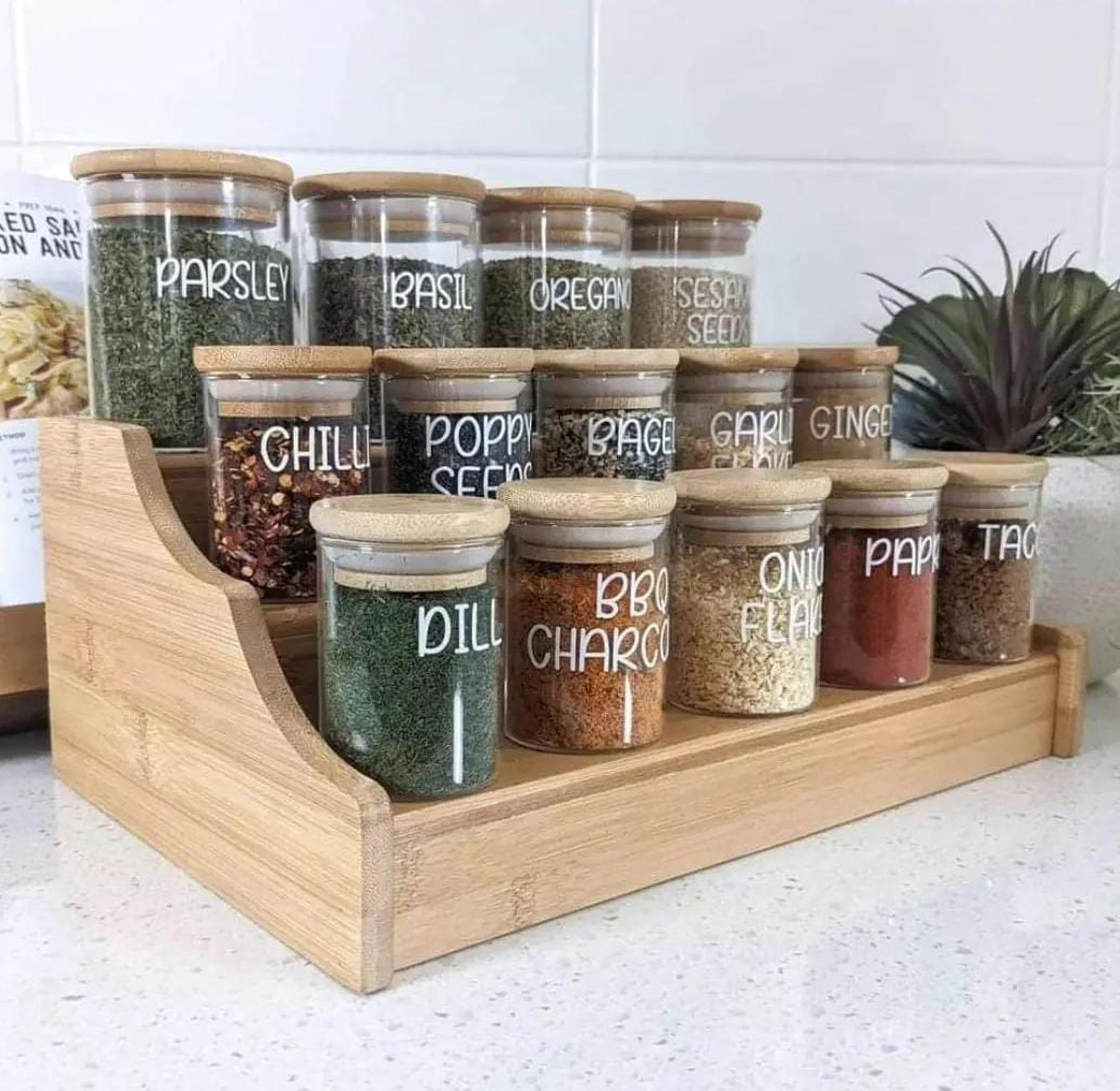 Elevate your kitchen organization with our 15-piece glass spice jar set, featuring a stunning wooden bamboo stand that combines elegance with functionality. Each glass jar is designed with a sleek silhouette, allowing you to easily see the vibrant colors and textures of your spices while ensuring they stay fresh with airtight lids. The bamboo stand not only provides a sturdy and attractive display but also saves valuable counter space, keeping your favorite seasonings within easy reach. Perfect for herbs, spices, and even loose teas, this set adds a touch of modern charm to any kitchen decor. Whether you're a seasoned chef or a cooking enthusiast, this spice jar set is an essential tool for maintaining an organized and inspiring culinary workspace.