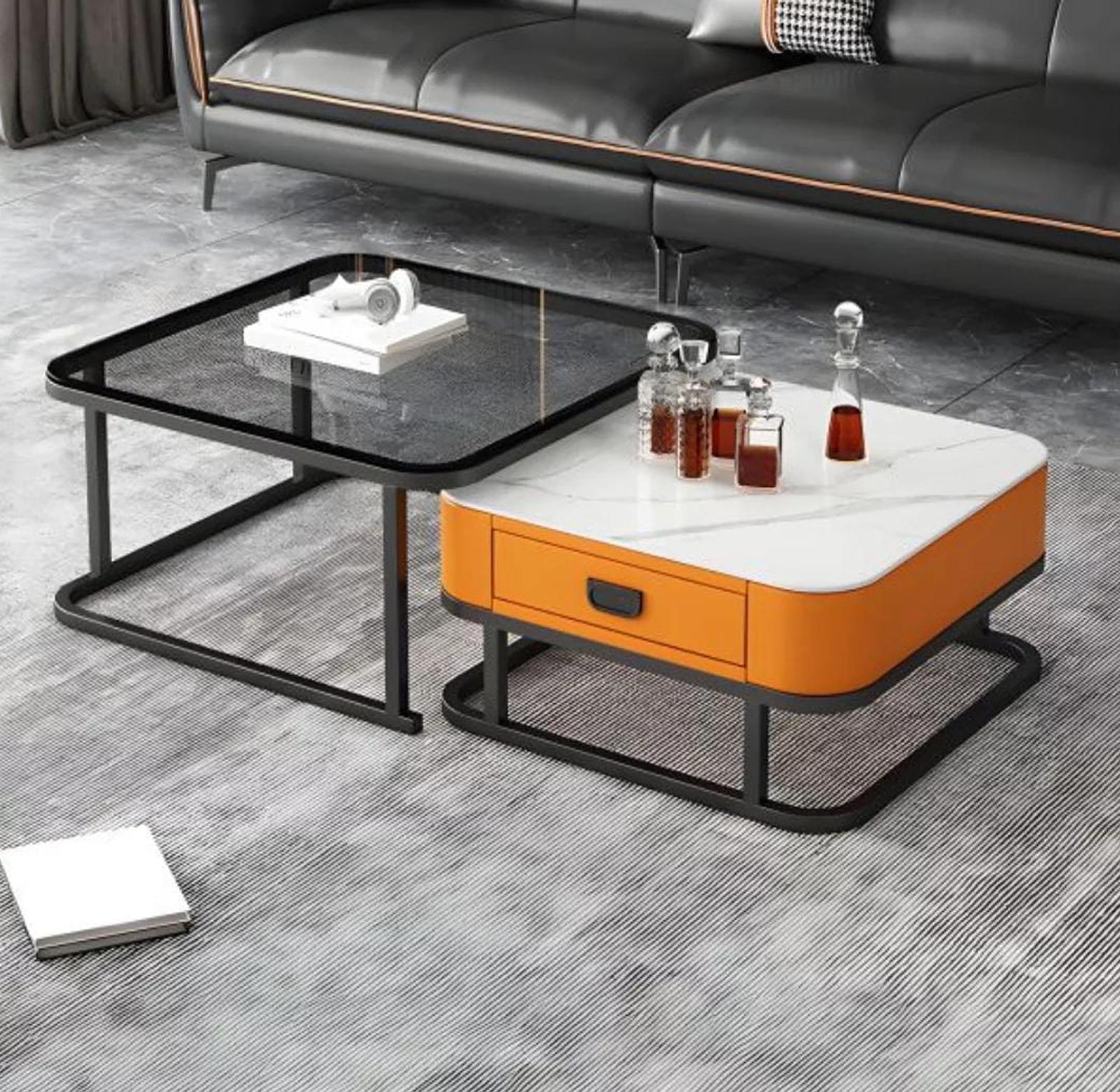 Upgrade your living space with this sophisticated 2-in-1 nesting coffee table, featuring a stunning marble-finish glass top that exudes luxury and modern charm. The sleek, glossy surface not only enhances the aesthetic appeal but also ensures durability and easy maintenance. Designed for versatility, the nested structure allows you to use the tables together for a layered look or separately for additional surface space when needed. Supported by a sturdy, well-crafted base, this coffee table seamlessly blends style with practicality, making it a perfect centerpiece for contemporary homes.