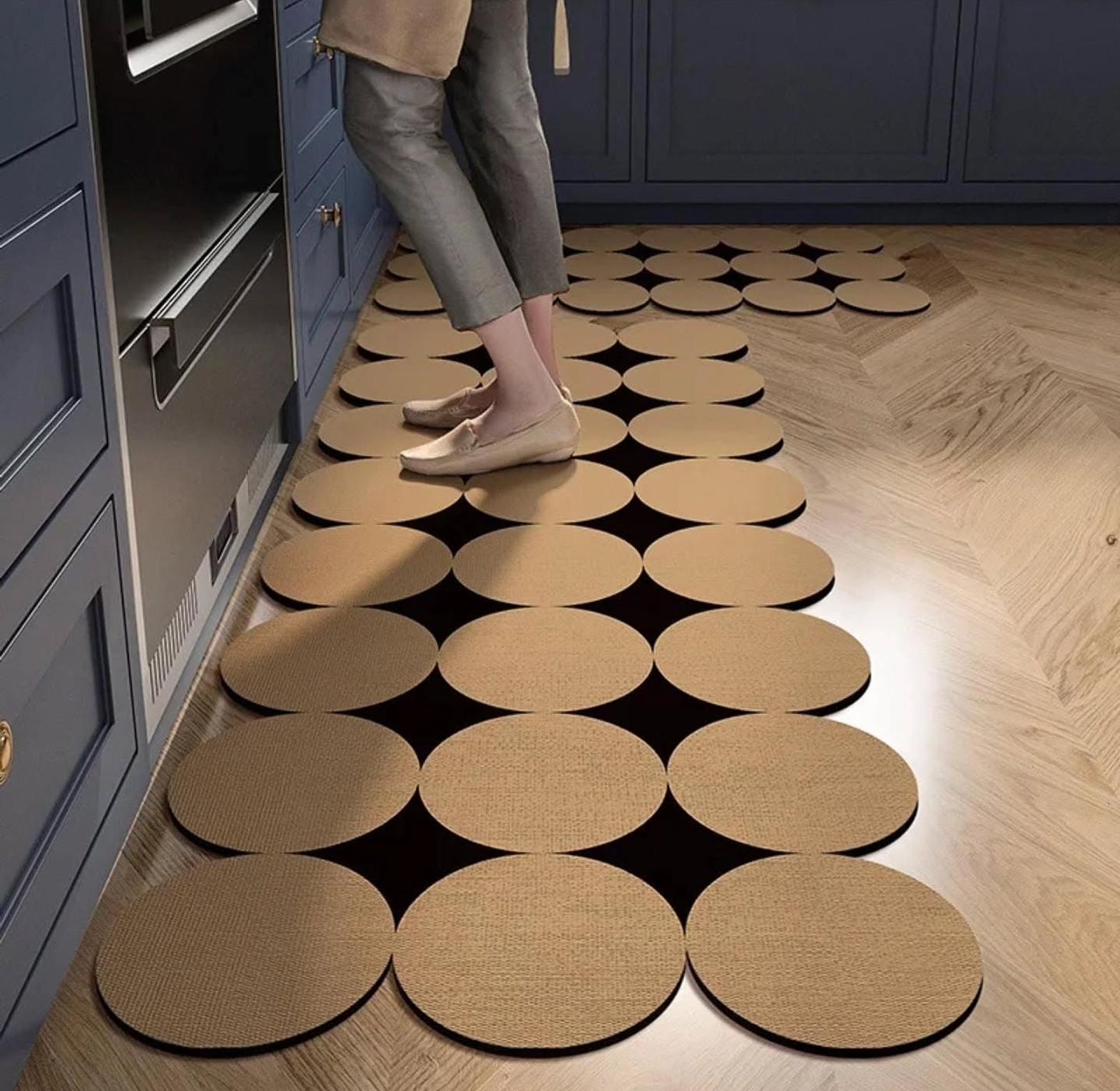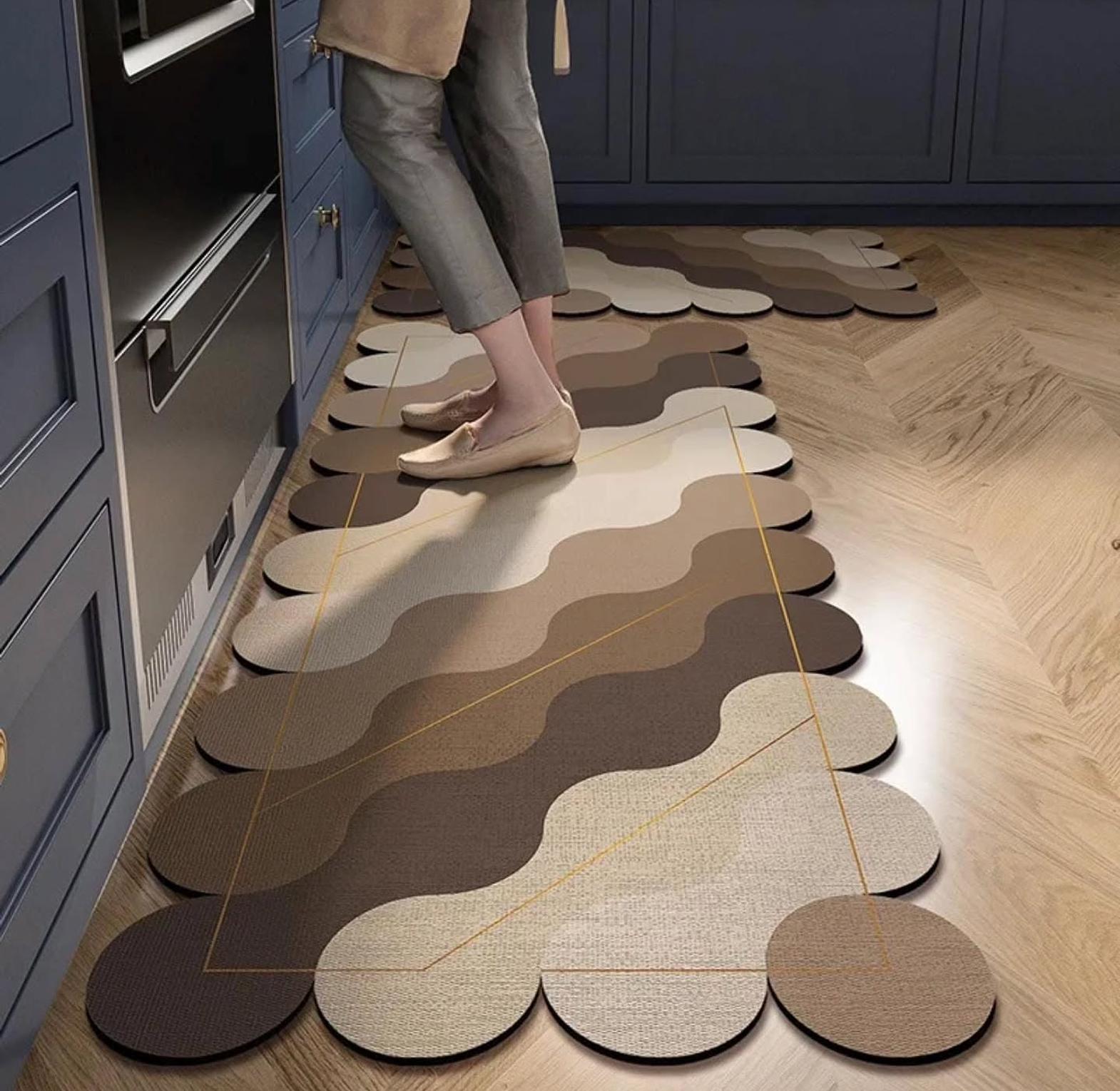 Bring comfort, safety, and modern style to your kitchen with this essential 2-piece mat set. Designed specifically for the kitchen environment, these mats feature a thick, super-absorbent surface that instantly soaks up water, spills, and grease, keeping your floor clean and dry while you cook or wash dishes.