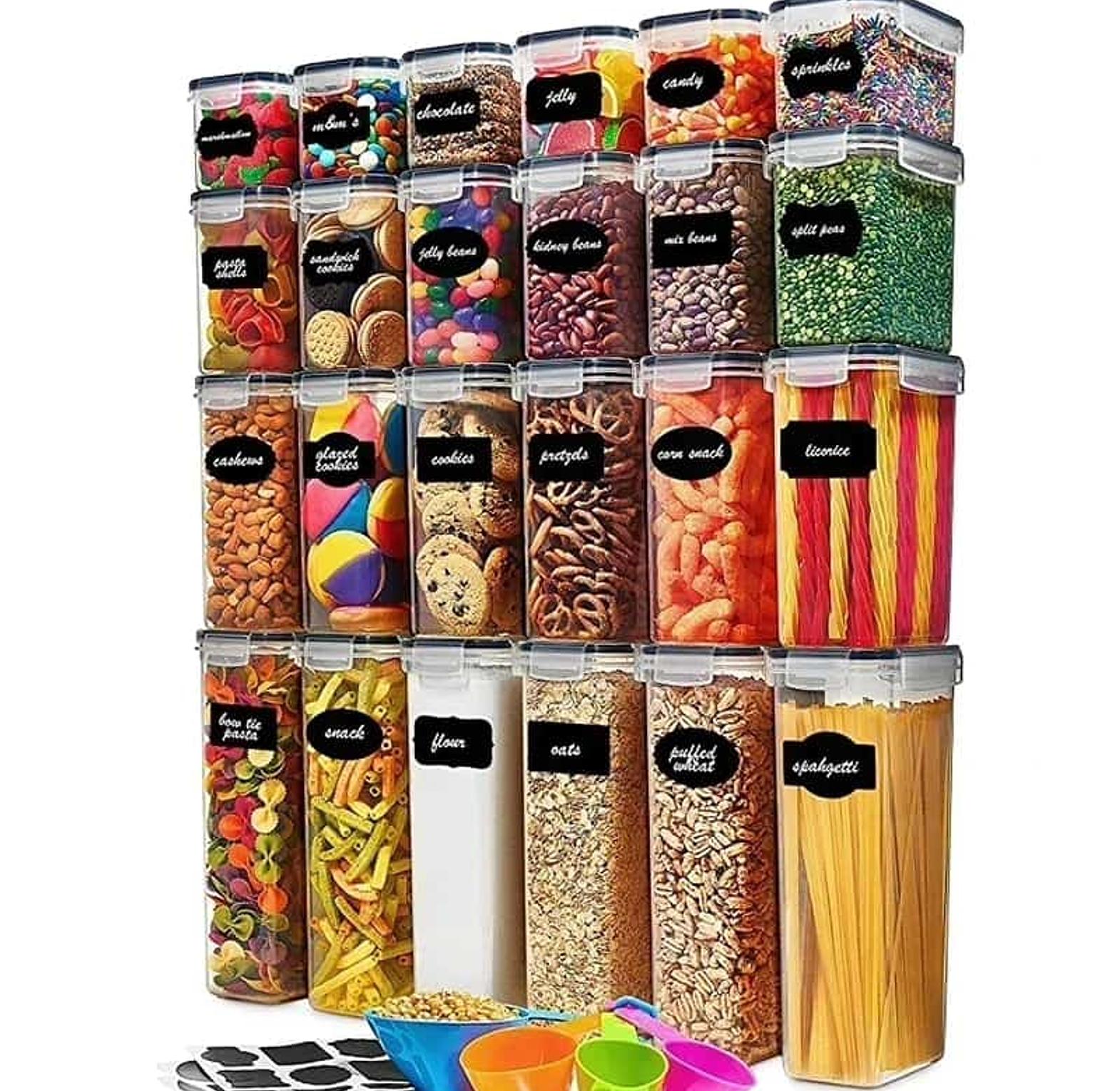 This 24pcs BPA-free Airtight Plastic Containers set is the ultimate solution for organizing your pantry in style. The containers are stackable to save space and ensure easy access to your ingredients. They come with labels and a pen to keep your pantry neat and help you identify contents at a glance. The airtight design keeps food fresh for longer, while the durable plastic is BPA-free and safe for your kitchen. This set includes: