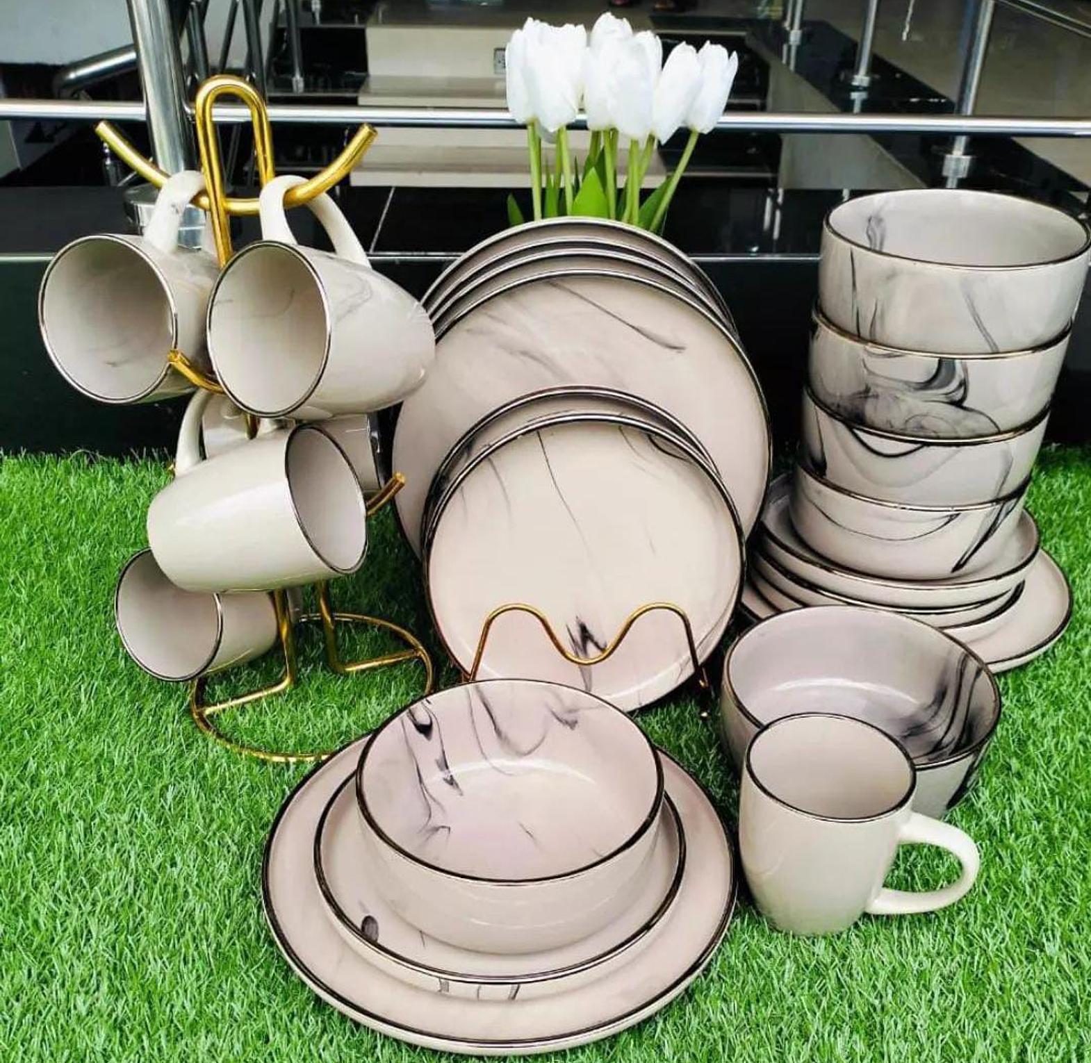 Our 24-piece dinner set is the perfect addition to any kitchen, crafted to enhance your dining experience with its elegant design and practical functionality. This comprehensive set includes dinner plates, salad plates, bowls, and mugs, providing everything you need to host family meals or entertain guests. Made from high-quality, durable materials, each piece is designed to withstand everyday use while maintaining its beauty. The timeless aesthetic complements various table settings, making it suitable for both casual dining and special occasions. Easy to clean and dishwasher-safe, this dinner set ensures convenience without compromising on style. Whether you’re enjoying a quiet meal at home or hosting a festive gathering, this 24-piece dinner set adds a touch of sophistication to every dining experience.