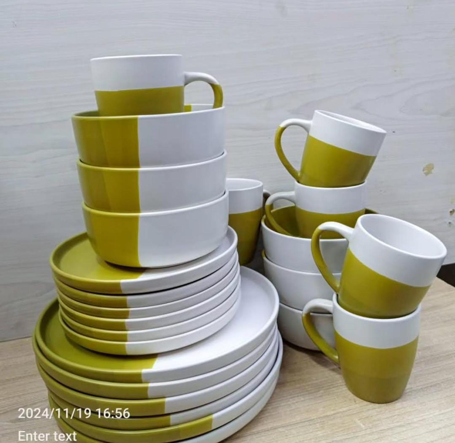 The 24-piece dinner set is a beautifully crafted collection that brings both style and functionality to your dining table. Made from high-quality materials, each piece is designed to last while enhancing the presentation of any meal. The set includes dinner plates, side plates, bowls, and mugs, offering everything you need for a well-rounded dining experience, whether for casual meals or formal gatherings. The timeless design complements any decor, while the durable construction ensures everyday usability and ease of maintenance. Perfect for families or as a thoughtful gift, this set adds elegance and practicality to every dining occasion.