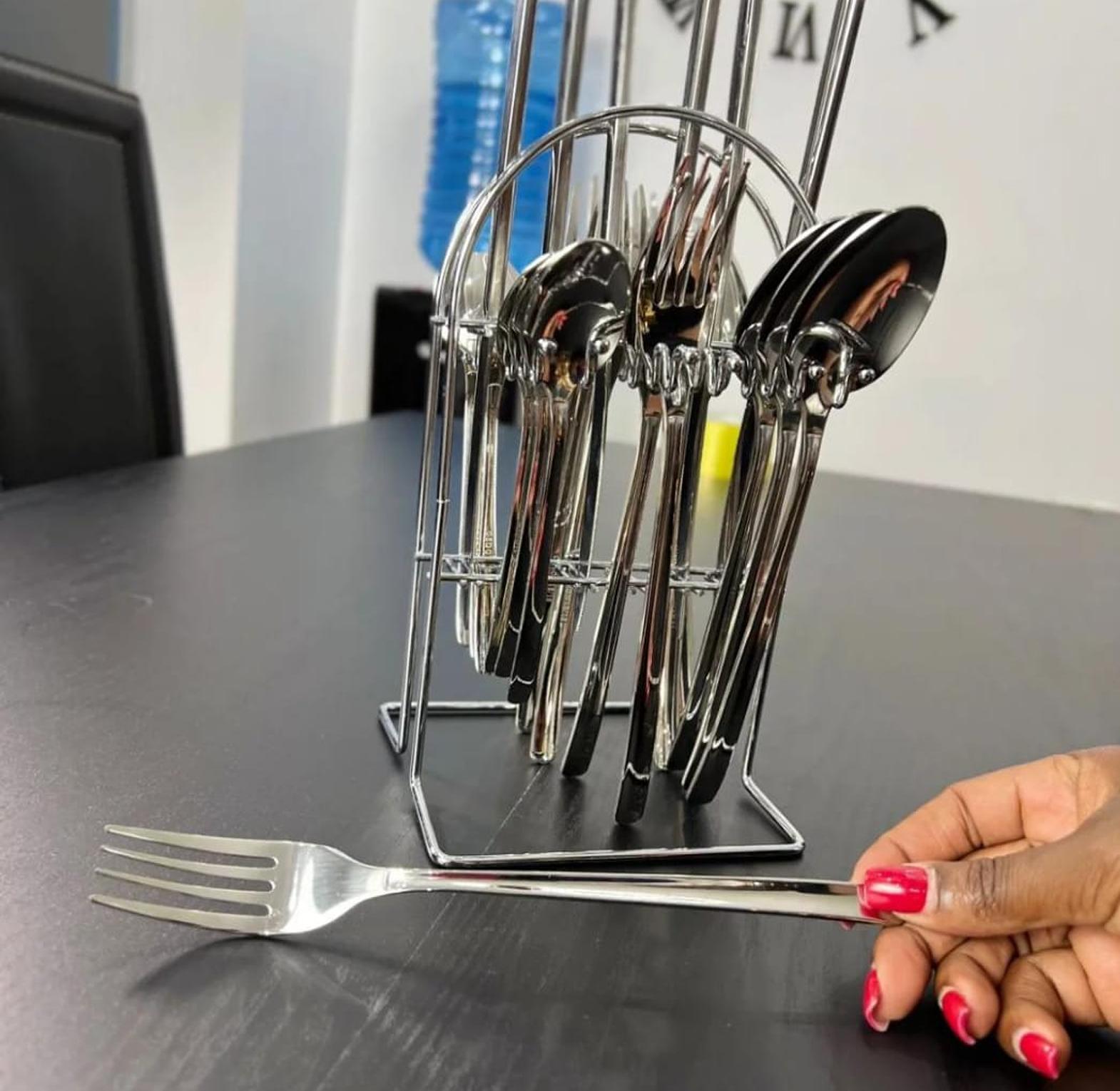 This 24-piece high-quality cutlery set offers a sophisticated touch to any dining occasion, combining both function and style. Crafted from durable stainless steel, each piece is designed to resist tarnishing and maintain its shine over time, ensuring long-lasting use. The set includes all essential utensils, such as dinner knives, forks, spoons, and dessert pieces, making it versatile for casual meals or formal gatherings. Its sleek, modern design complements any table setting, adding a refined elegance to your dinner parties or daily meals. With a polished finish and comfortable grip, this cutlery set makes each dining experience both stylish and practical.