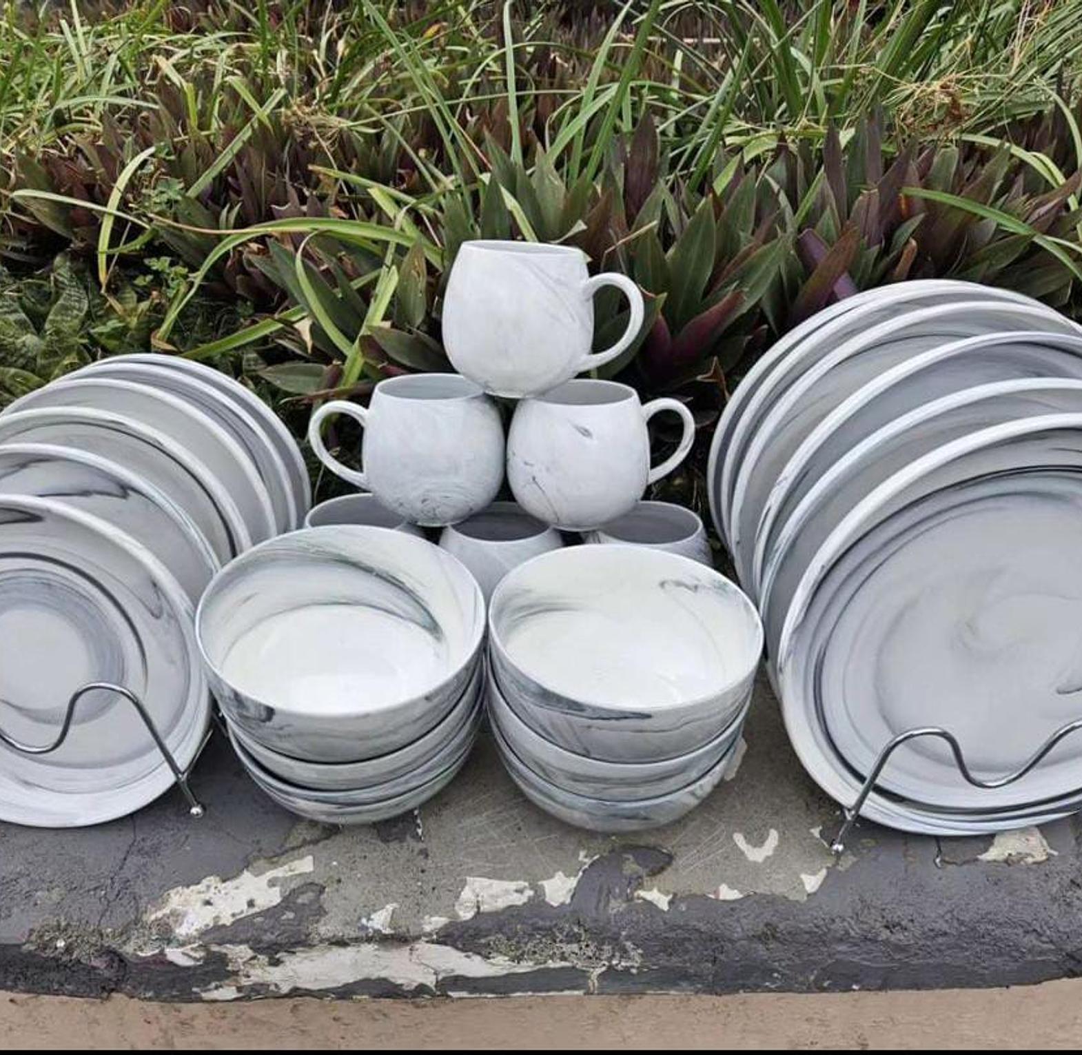 Transform your table setting with our stunning 24-piece marble textured ceramic dinner set, an exquisite collection that brings sophistication and style to your dining experience. This comprehensive set includes dinner plates, salad plates, and bowls, all featuring a beautiful marble design that adds a touch of luxury to any meal.