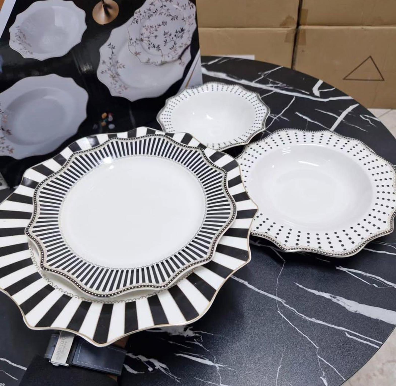 Elevate your dining occasions with our exquisite 24-piece Porcelain Dinner Set, designed for both everyday use and special celebrations. Crafted from high-quality porcelain, each piece is beautifully refined, offering a timeless look with a delicate yet durable finish. The set includes everything you need for a complete meal: dinner plates, side plates, bowls, and mugs, all thoughtfully designed to create a seamless dining experience. The smooth, glossy finish adds a touch of sophistication to any table, while the classic design ensures versatility, complementing various themes and occasions. Whether you're hosting a dinner party or enjoying a family meal, this porcelain dinner set combines beauty with practicality, making every meal feel special.