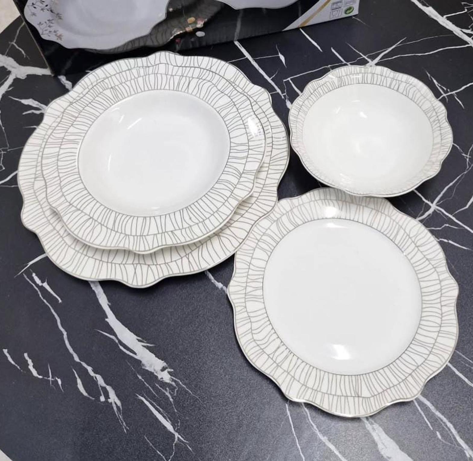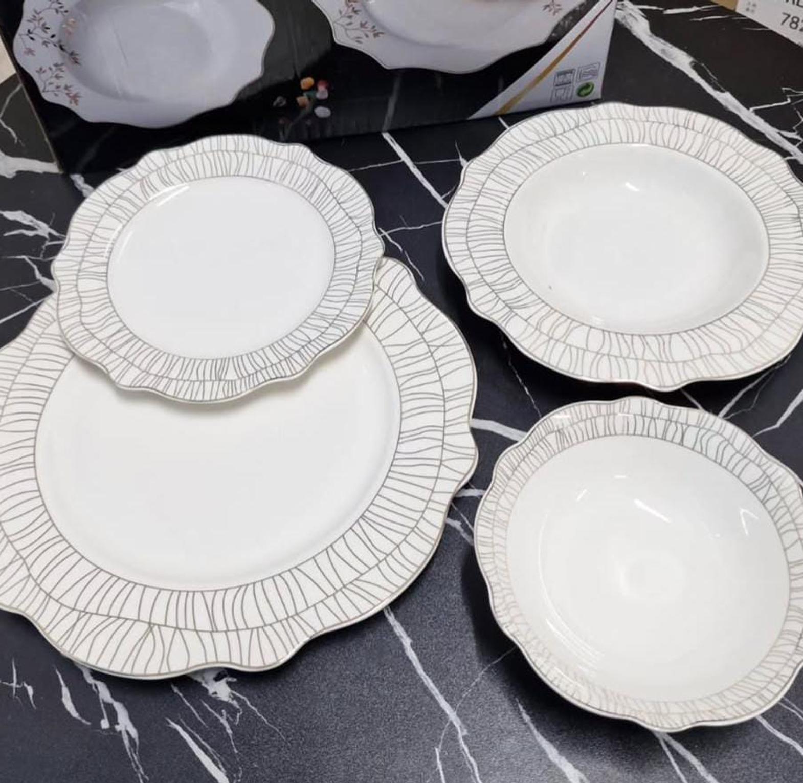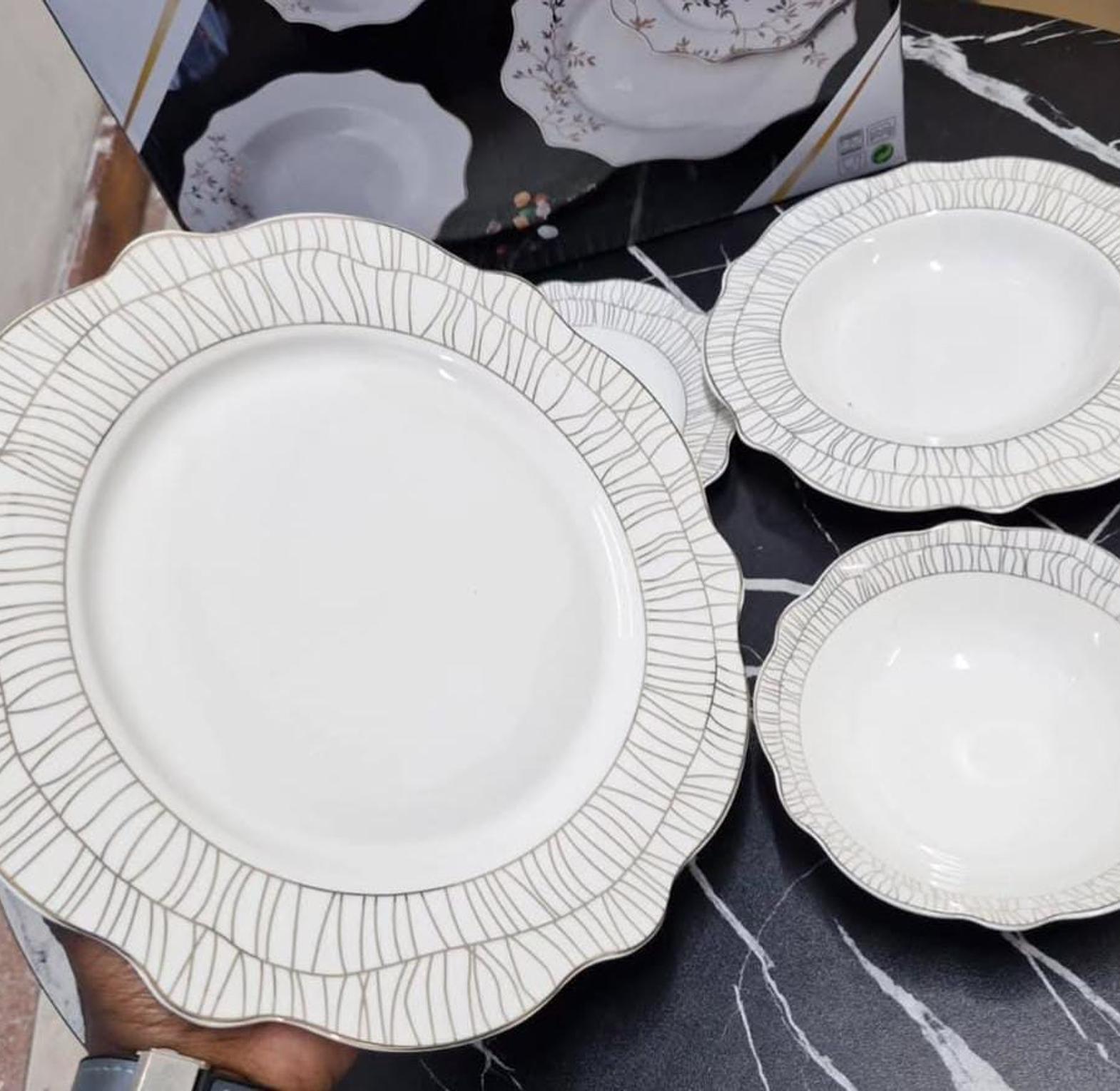 Elevate your dining experience with our 24-piece Porcelain Dinner Set, crafted to bring both style and durability to your table. Made from high-quality porcelain, this set includes dinner plates, side plates, bowls, and mugs, each designed with a classic finish that complements any table setting. The smooth, glossy texture not only adds sophistication but also makes cleaning effortless. Whether you’re hosting a dinner party or enjoying a family meal, the elegant design and versatility of this set make it the perfect addition to any occasion. Ideal for both casual dining and formal events, this dinner set combines beauty with functionality for every meal.