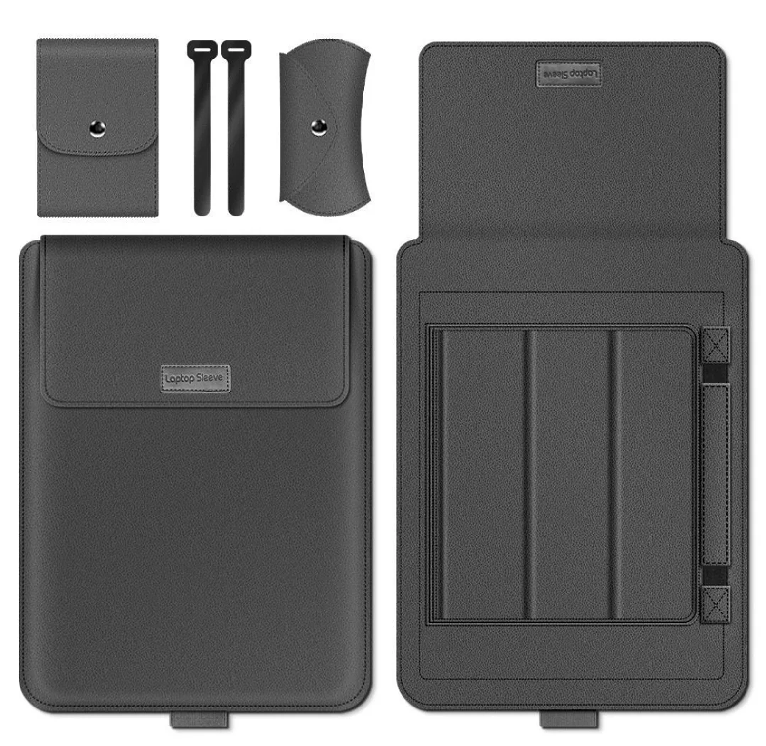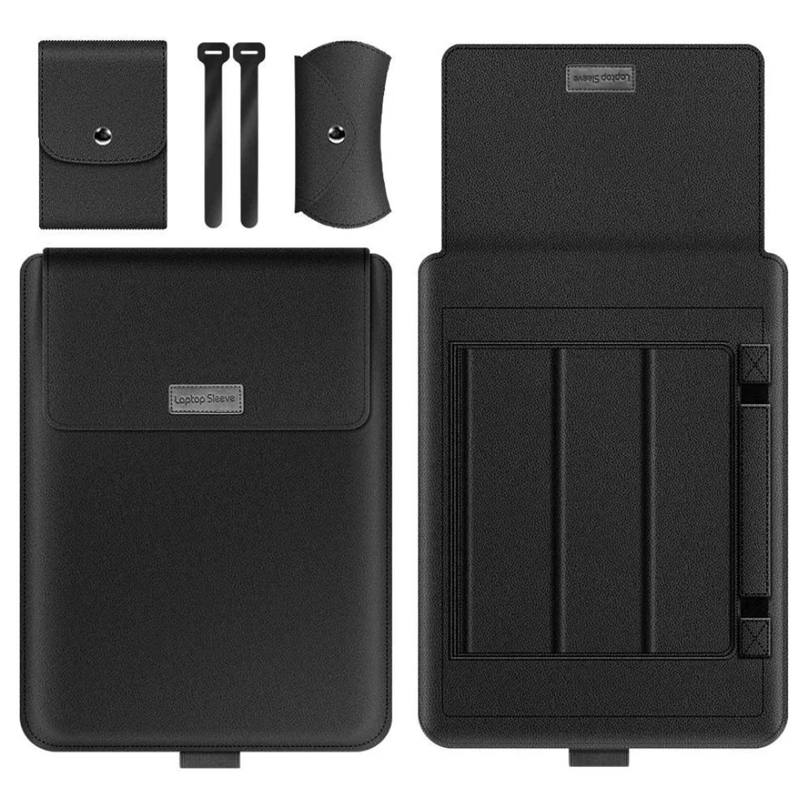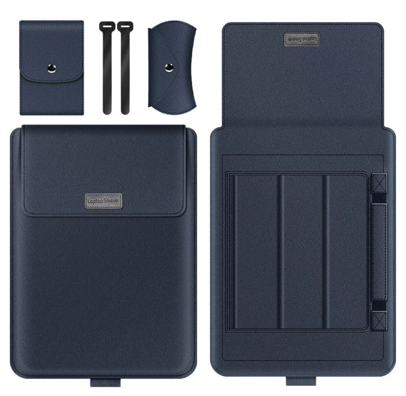 Upgrade your workspace on the go with this 3-in-1 laptop sleeve and stand, designed for maximum functionality and style. Made from premium artificial leather with a soft plush lining, it offers superior protection against scratches, stains, and water. Its multi-functional design transforms into a cooling bracket for better airflow, a lightweight carrying case, and a convenient flip mouse pad for smooth productivity anywhere. Thoughtfully designed with a pen sleeve and hand strap, it’s practical, portable, and easy to clean. Perfect for students, professionals, and digital nomads, this laptop sleeve is the ultimate blend of protection and performance.