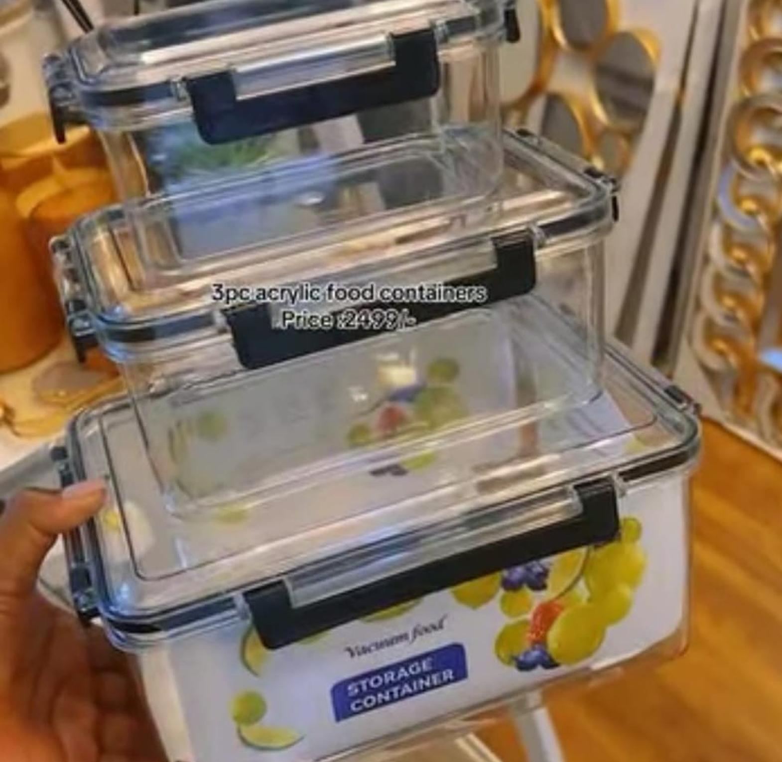 Streamline your pantry or countertop with our 3-piece acrylic food container set, designed to keep ingredients fresh and easily accessible. Made from durable, crystal-clear acrylic, these containers provide a sleek, modern look while allowing you to quickly identify contents. Each container is equipped with an airtight lid that seals in freshness, making them ideal for storing grains, snacks, or baking essentials. Stackable and space-saving, this set brings both practicality and elegance to your kitchen organization. Whether used in the pantry or displayed on the counter, these containers are a functional, stylish solution for a well-ordered kitchen.