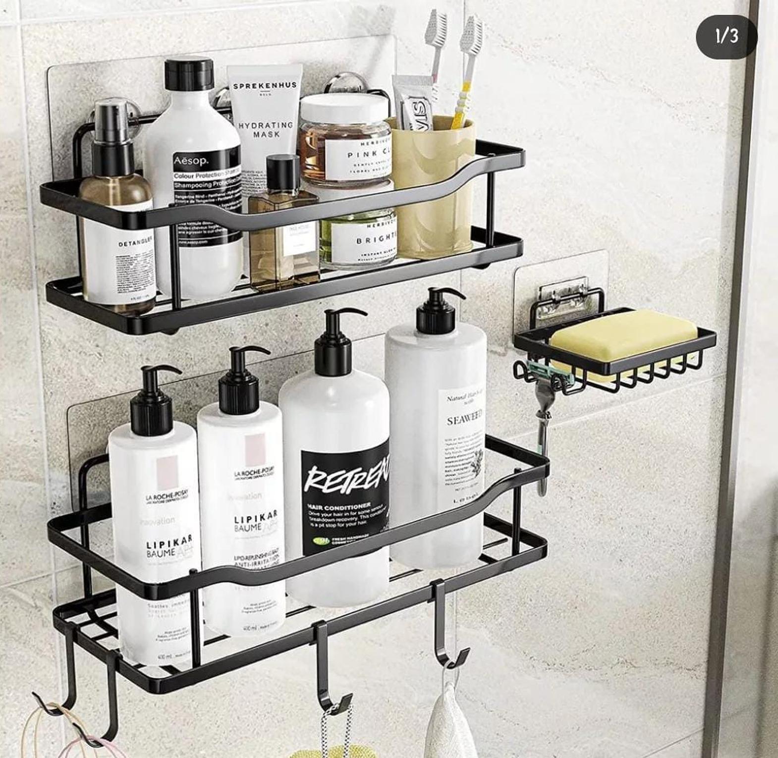 Transform your bathroom space with this 3-piece shower caddy shelf set, designed to keep your essentials neatly arranged and within reach. Crafted from high-quality, rust-resistant materials, these shelves provide sturdy support for shampoos, soaps, lotions, and other toiletries. The open-drain design ensures quick drying, preventing water buildup and mold growth. Easy to install with strong adhesive or screw-mounted options, these organizers offer a secure, space-saving solution without damaging walls. Perfect for modern, minimalist, or spa-like bathrooms, this set combines functionality with a sleek, stylish touch.