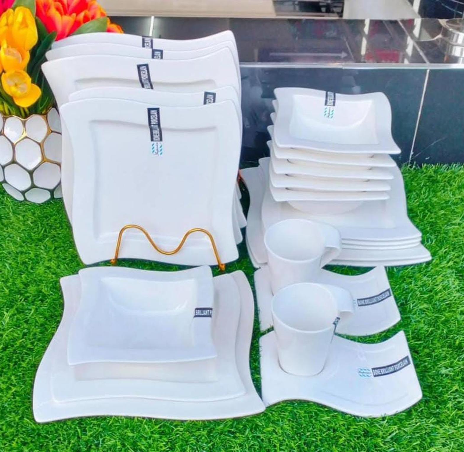 Simplicity meets sophistication in this 30-piece white plain dinner set — a timeless classic designed for modern living. Featuring 6 dinner plates, 6 side plates, 6 bowls, 6 cups, and 6 saucers, this complete set offers all the essentials for everyday dining or casual entertaining. With its clean lines and crisp white finish, it blends seamlessly with any table décor, making it easy to dress up or down depending on the occasion. The pieces are thoughtfully shaped for comfort and practicality, offering durability without compromising on style. Whether you're starting fresh or upgrading your kitchenware, this set brings quiet elegance to every meal, from morning coffee to evening dinner.