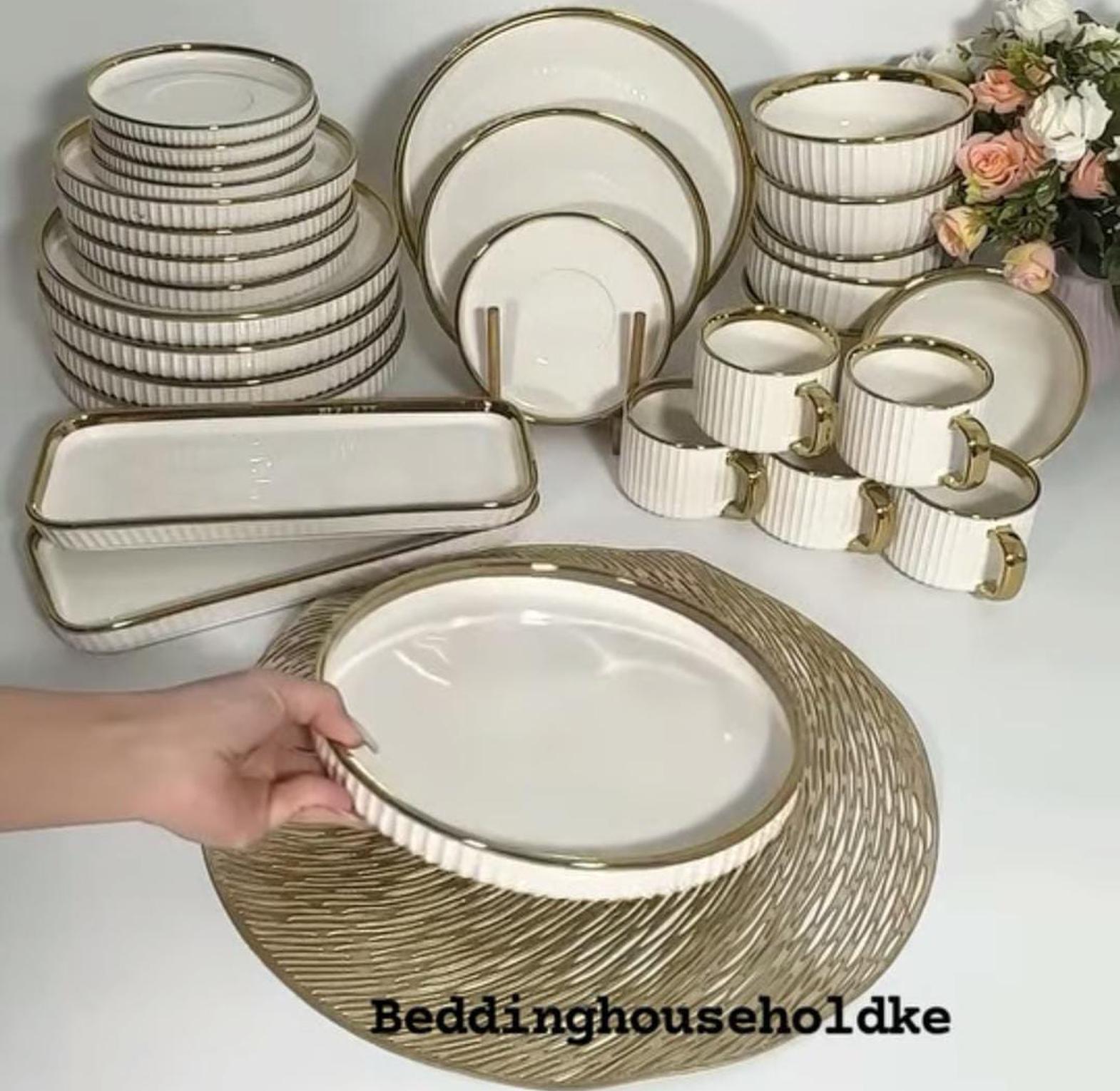 Transform your dining experience with this luxurious 32-piece European porcelain dinner set, a perfect blend of elegance and functionality. Expertly crafted from high-quality porcelain, each piece features a delicate yet durable design with a smooth, glossy finish that enhances any table setting. Inspired by classic European aesthetics, the intricate details and fine craftsmanship make this set ideal for both everyday meals and special occasions. Whether hosting family gatherings or formal dinners, this exquisite collection brings sophistication, charm, and a touch of opulence to every dining moment.