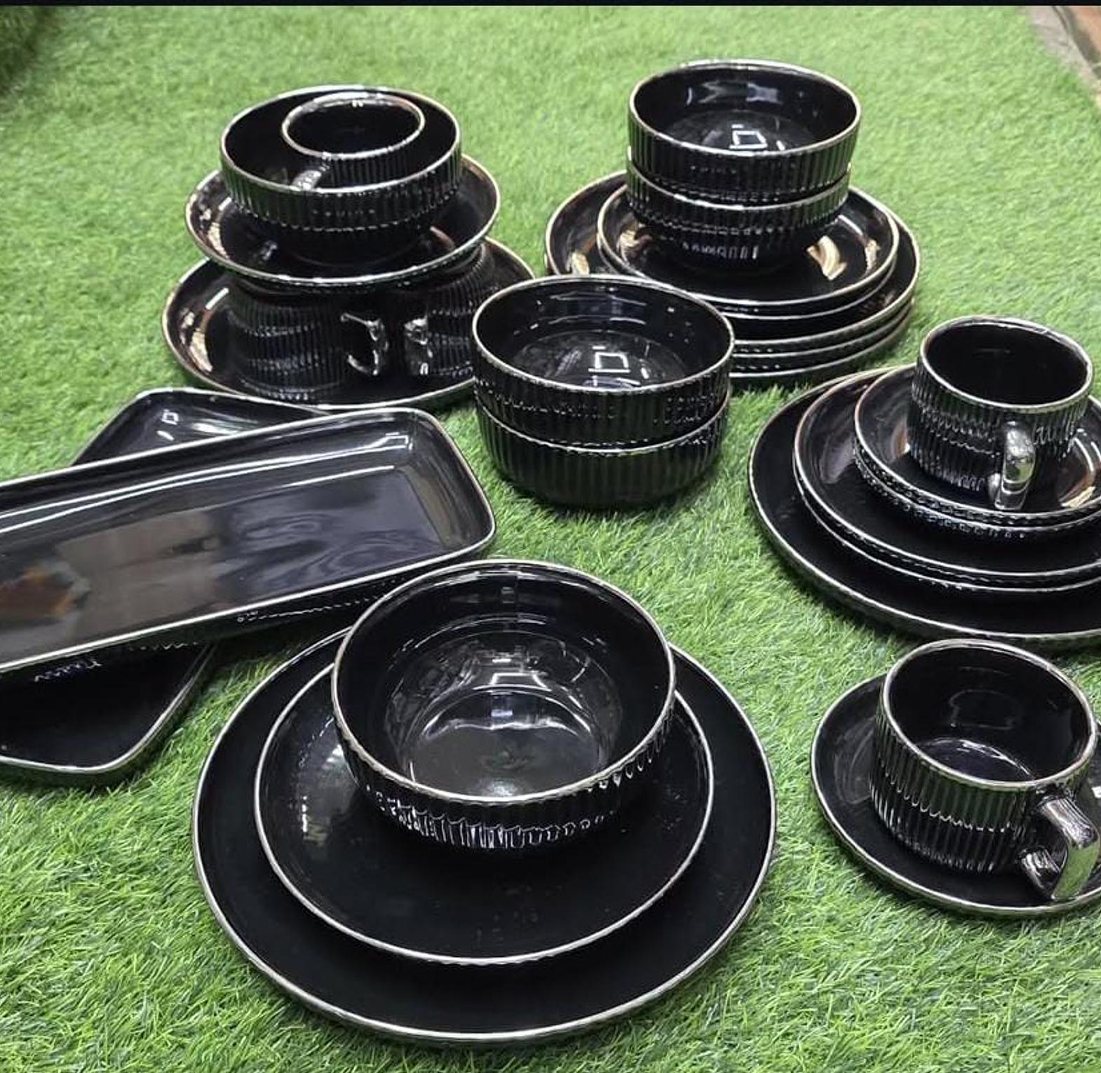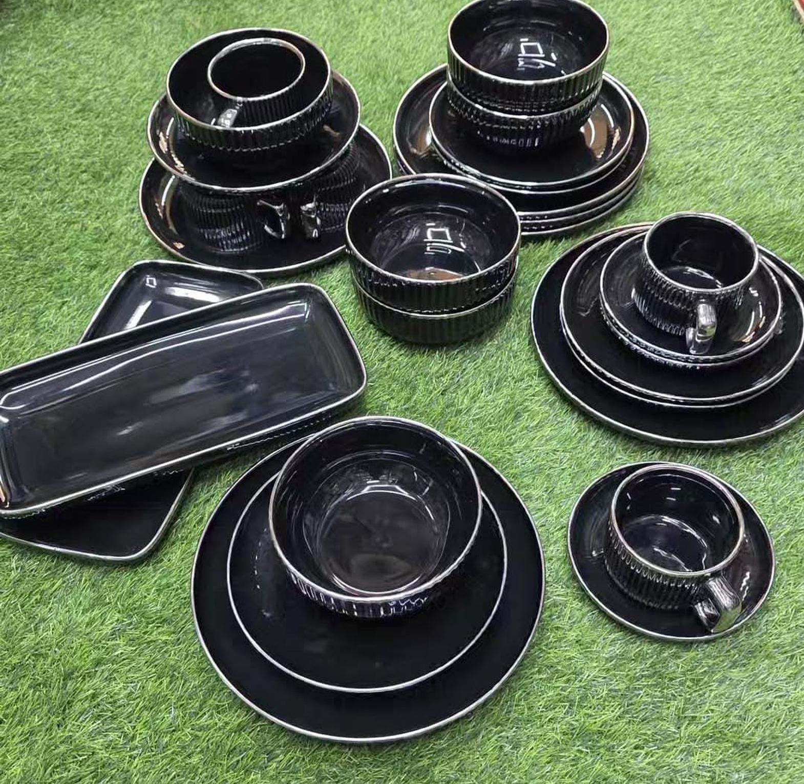 Crafted with refined European artistry, this 32-piece elegant porcelain dinner set brings classic charm and durable luxury to your dining table. The set includes 6 dinner plates (10"), 6 side plates (8"), 6 soup bowls (6"), 6 mugs (220ml), 6 cup saucers, and 2 rectangular serving platters—making it a complete ensemble ideal for family meals, formal dinners, or entertaining guests. Each piece features a flawless porcelain finish that is both lightweight and resilient, designed to withstand everyday use while maintaining its graceful aesthetic. Whether for modern tables or traditional settings, this set offers a seamless blend of function and timeless elegance.