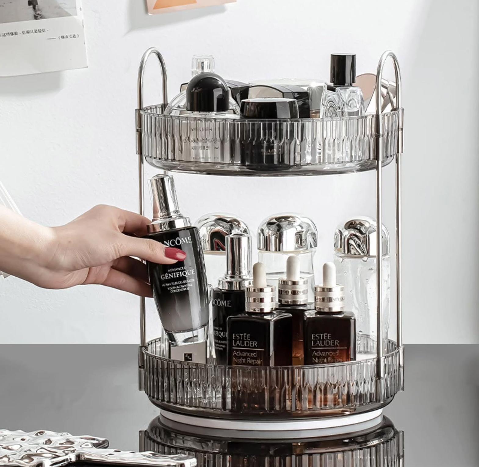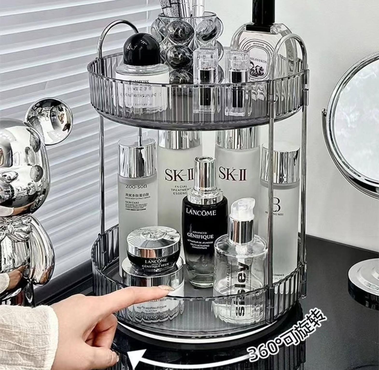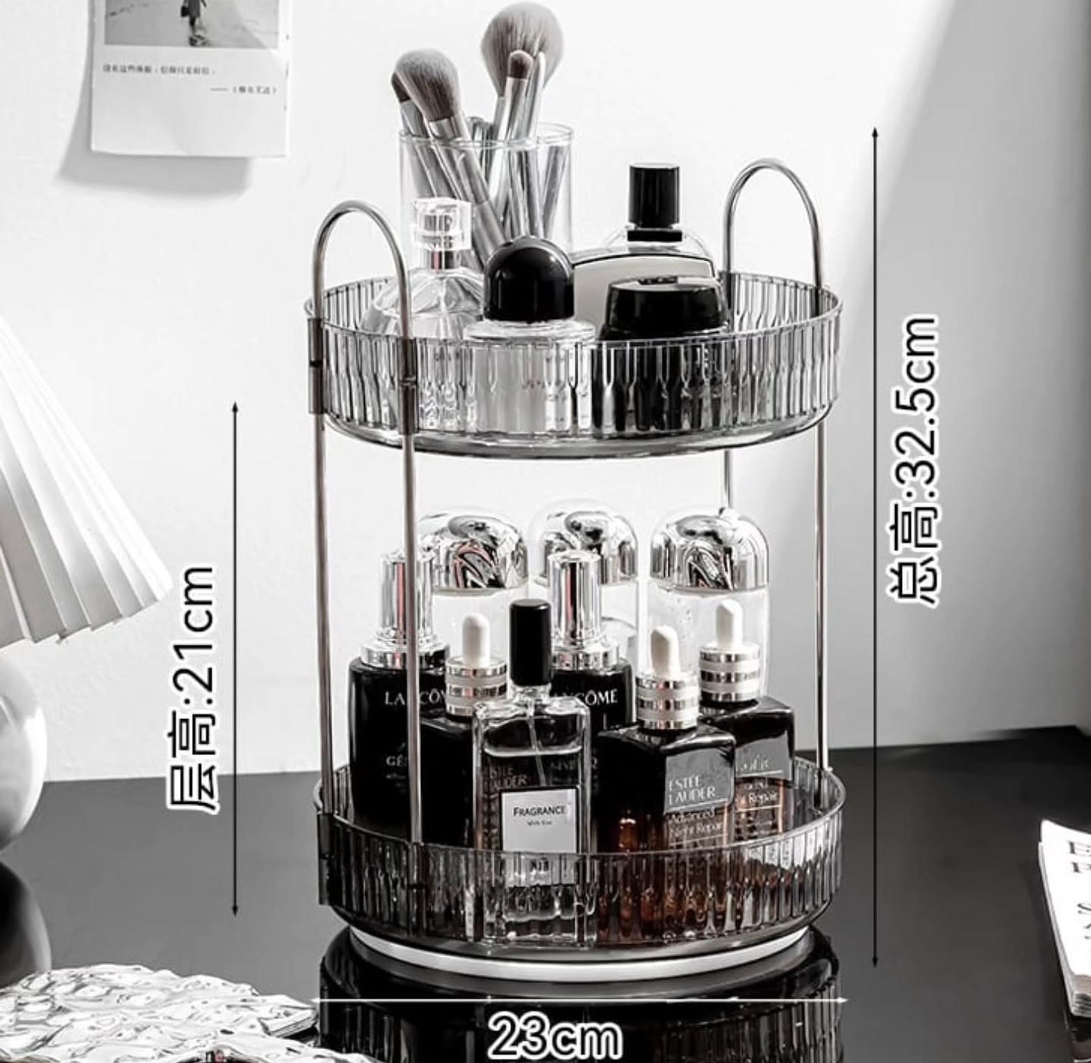 The 360° Rotating 2-Tier Transparent Makeup Organizer is the perfect blend of functionality and elegance for modern beauty lovers. Designed with a smooth swivel feature, it allows easy access to your cosmetics, skincare, and accessories from every angle. Crafted from high-quality, durable transparent material, this organizer is not only sturdy but also adds a classy touch to your vanity or bathroom. With two spacious tiers, it provides ample storage for lipsticks, brushes, perfumes, and more while keeping your space tidy and clutter-free. Stable, stylish, and easy to clean, this rotating cosmetic organizer is a must-have for any makeup collection.