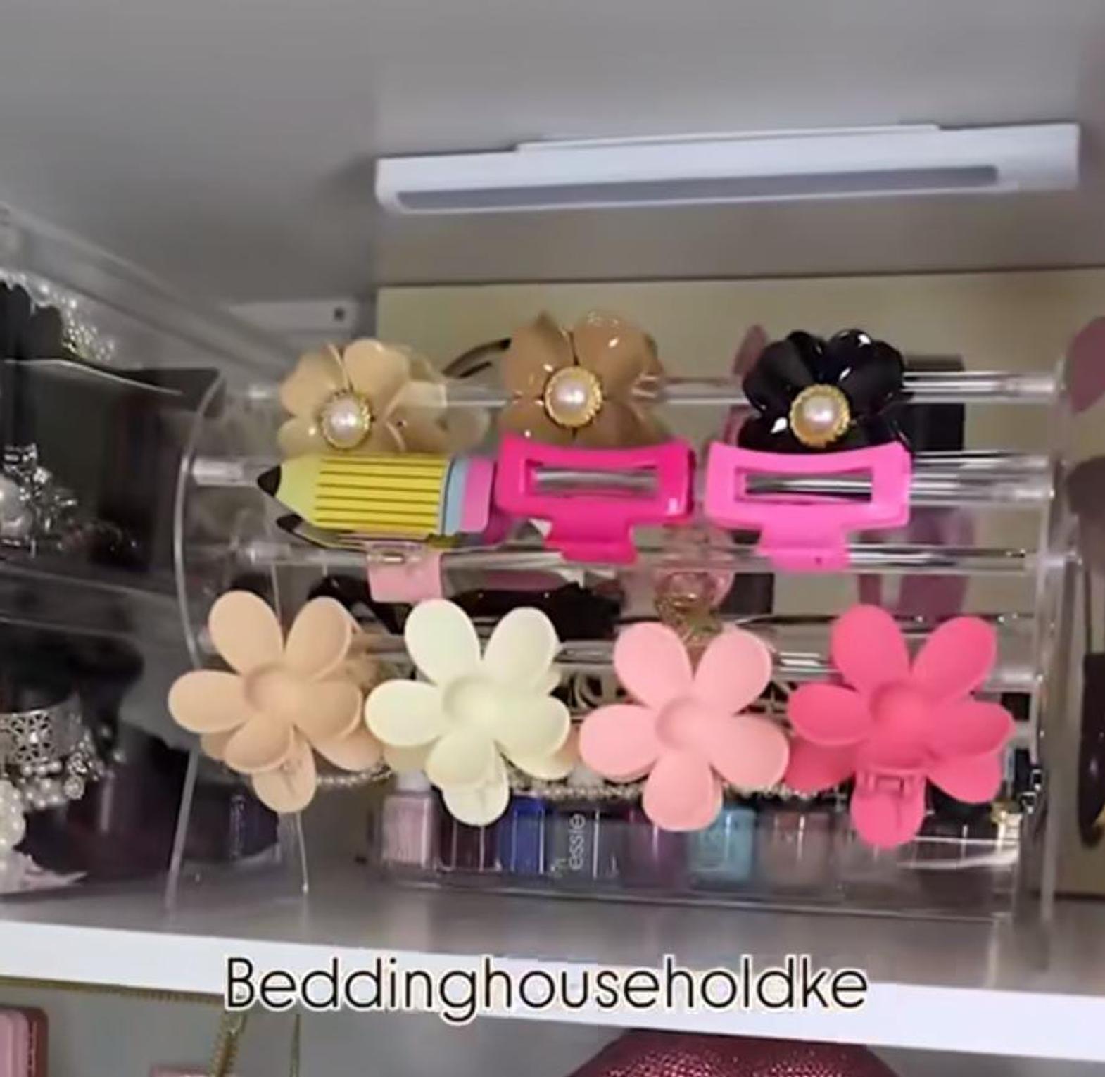 Keep your accessories neatly organized with this sleek 360° rotating acrylic headband holder and claw clip organizer, designed for both functionality and style. The transparent acrylic build offers a modern, clutter-free look while allowing you to easily view and select your favorite headbands, scrunchies, or clips. Its smooth rotating design ensures effortless access from all angles, making it a perfect addition to vanities, dressers, or salons. Durable, space-saving, and elegantly designed, this organizer is the ultimate solution