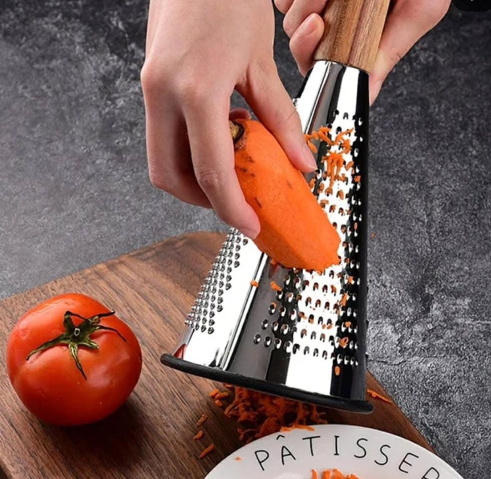 Upgrade your meal prep with this 3-sided manual vegetable shredder and grater, a must-have tool for every kitchen. Featuring three distinct grating surfaces, it effortlessly handles everything from fine zesting to coarse shredding, making it perfect for vegetables, cheese, fruits, and more. Its sturdy, ergonomic design ensures a comfortable grip and stable use, while the sharp stainless steel blades provide precision and efficiency. Compact and easy to clean, this multi-functional grater simplifies cooking, helping you create fresh, finely textured ingredients for your favorite recipes with ease.