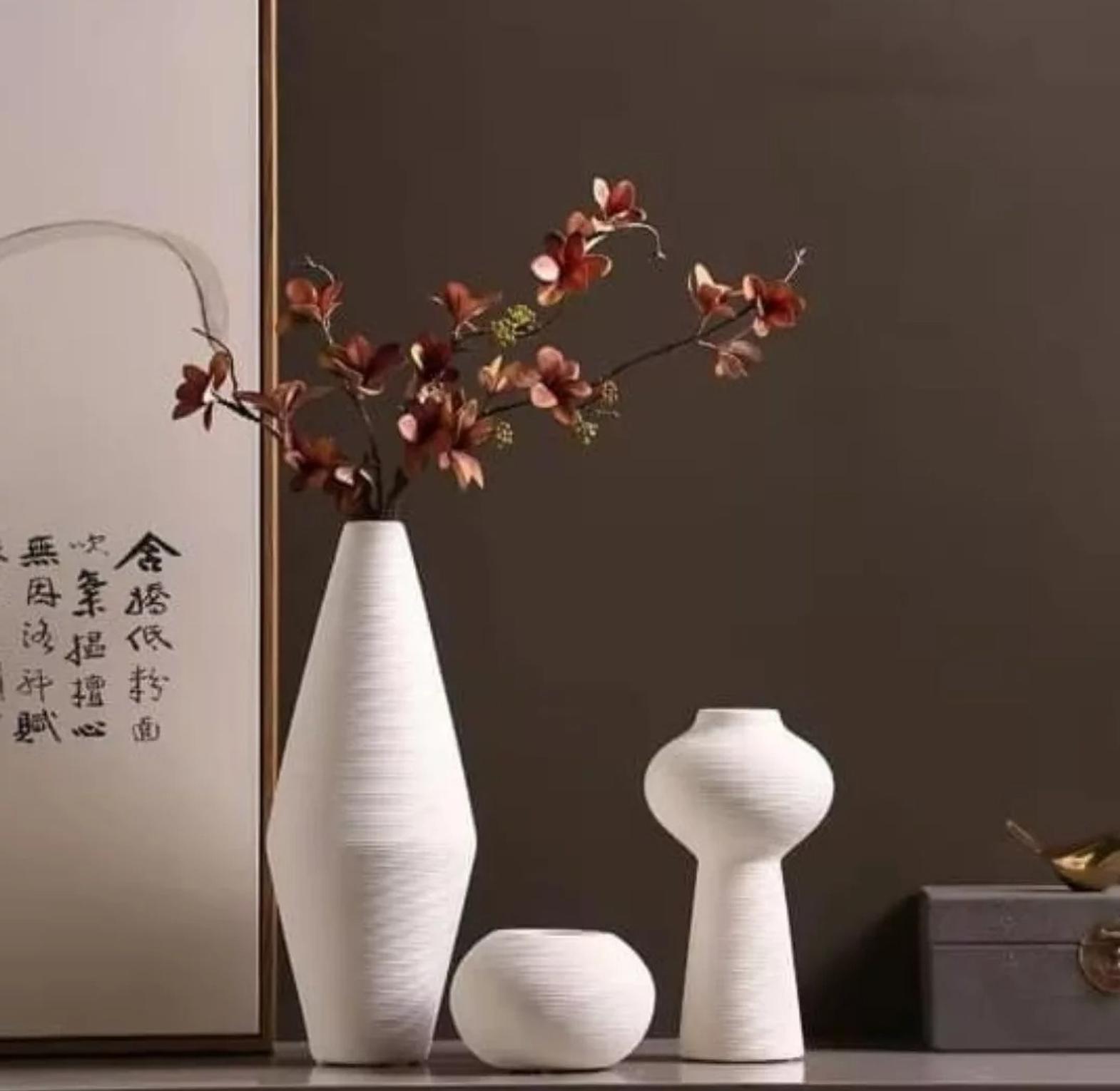 Transform your living space with our Elegant Minimalist Ceramic Vase Set, a captivating 3-piece collection designed to enhance any room with its sophisticated charm. Each vase in this set boasts a unique geometric silhouette with a subtle textured finish, embodying the essence of modern and minimalist design. Crafted from high-quality ceramic, these vases are not just decorative but also durable and long-lasting.
