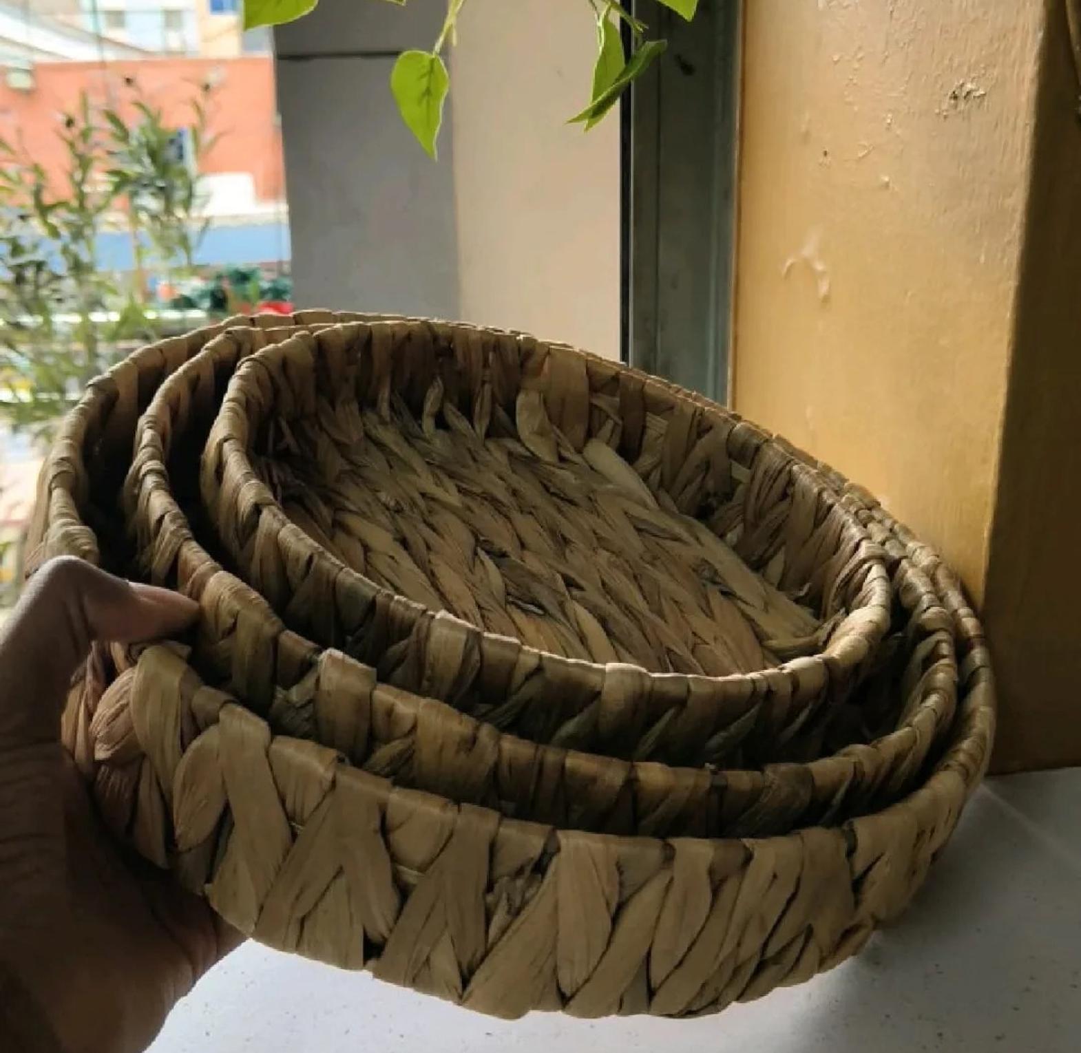 Enhance your home's aesthetic with the Terra Weave Natural Wicker Decorative Trays, a charming and versatile set of three handcrafted pieces. Each tray is meticulously woven from natural wicker, showcasing an intricate texture and earthy tones that bring an authentic, organic feel to your decor. Designed as stackable nesting trays, they offer convenient storage when not in use and come in varying sizes to accommodate diverse decorative and organizational needs. Perfect for displaying candles, small potted plants, keys, or serving as an elegant catch-all on entryways, coffee tables, or nightstands, these trays are a stylish solution for decluttering and adding visual interest. While designed without handles for a sleek, minimalist profile, their sturdy construction ensures durability for everyday use. Embrace the beauty of natural materials and artisanal craftsmanship with this functional yet decorative set. This tray set is ideal for those searching for wicker decorative trays, natural woven baskets, boho home decor, rustic accent pieces, and eco-friendly storage solutions.