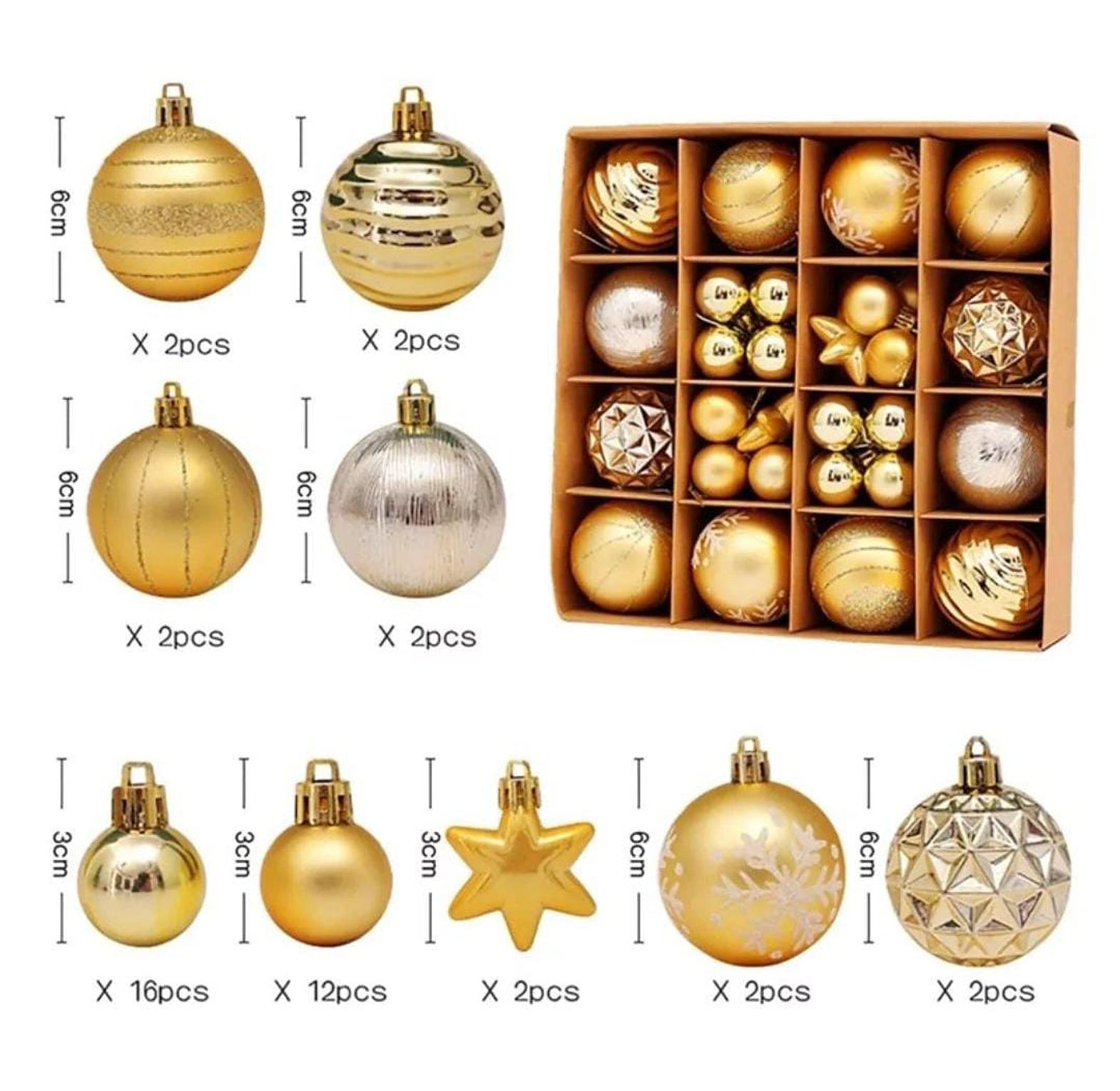 Our 42-piece Christmas ball set provides everything you need to create a stunning, cohesive look for your holiday tree. Featuring an assortment of sizes, finishes, and colors, from classic red and gold to shimmering metallics and matte textures, this set allows you to mix and match for a personalized, festive display. Each ornament is crafted from durable materials to withstand the holiday season, ensuring they’ll bring joy for years to come. Perfect for large or medium-sized trees, wreaths, or garlands, this set adds elegance and sparkle, transforming your home into a beautiful holiday retreat full of warmth and cheer.