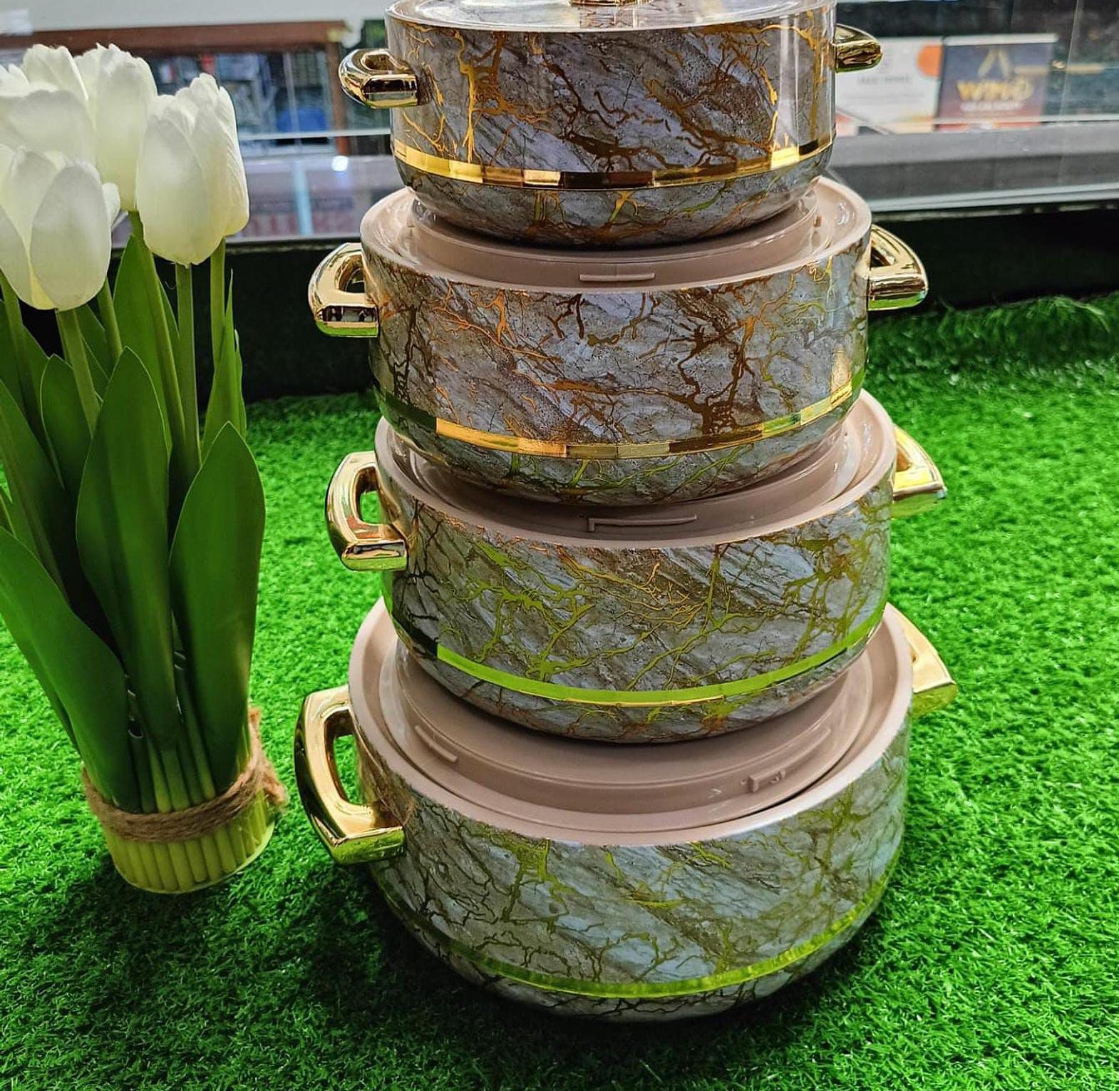 Upgrade your dining experience with this 4-piece insulated Turkish hotpot set, crafted to keep your meals hot and fresh for up to 6 hours. With capacities of 1L, 1.5L, 2.5L, and 3L, this set is perfect for family meals, gatherings, or special occasions. Each hotpot is designed with superior insulation technology and a stylish exterior, offering both functionality and elegance. Made from high-quality materials, these hotpots ensure long-lasting heat retention while maintaining the freshness of your food. Ideal for serving a variety of dishes, this set combines practicality with a touch of Turkish-inspired luxury.