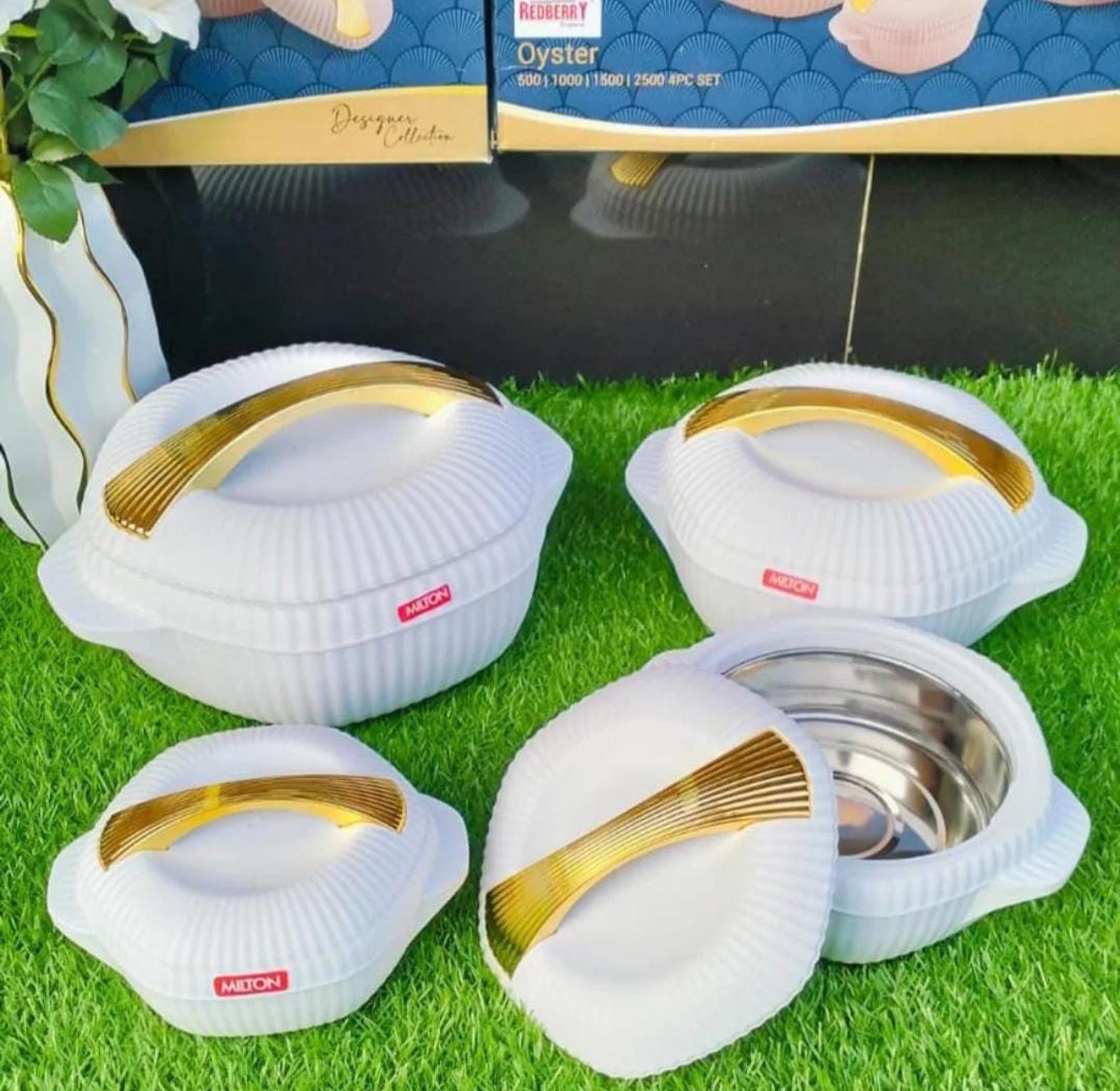 Elevate your dining experience with this 4-piece luxurious insulated hotpot set, crafted to provide both style and functionality. Each pot is designed with high-quality insulation to keep your food hot for hours, ensuring that every bite remains fresh and flavorful. The sophisticated design, featuring elegant finishes and secure, easy-to-use lids, complements any table setting, from casual meals to festive occasions. The set includes varying sizes to suit different dishes—perfect for soups, stews, rice, and more. Whether you're hosting a dinner party or enjoying a family meal, these hotpots offer the perfect combination of luxury, durability, and convenience, ensuring your dishes stay warm while adding a touch of class to your dining table.