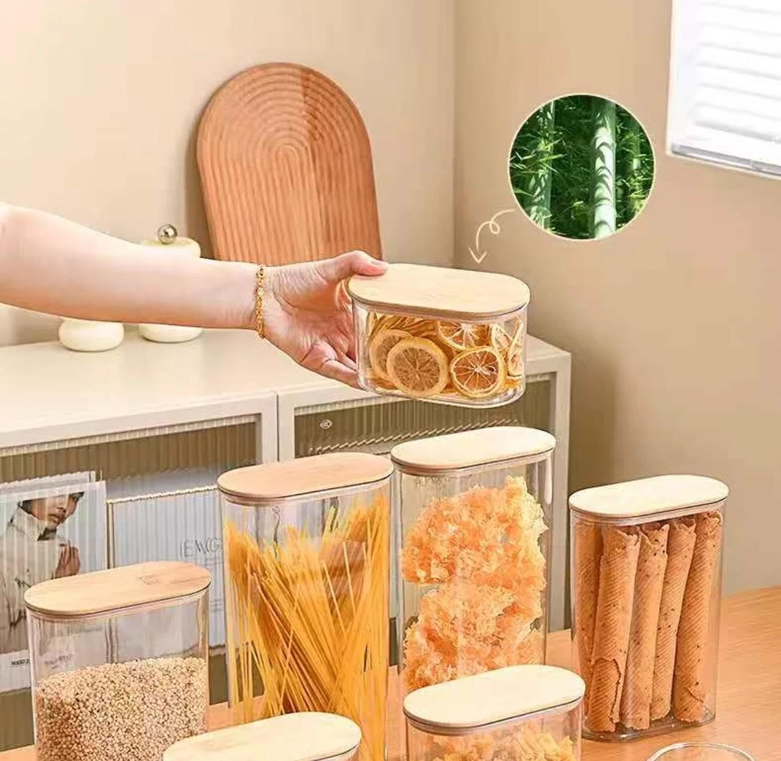 What truly sets this set apart are the exquisite, natural bamboo lids. More than just stylish, these lids are designed to provide an airtight seal, effectively locking in freshness to retain the taste for longer and protect your food from moisture and pests. The combination of clear acrylic and warm bamboo creates a sophisticated look that complements any kitchen style. Durable, easy to clean, and designed for efficient space utilization, these containers are a must-have for anyone seeking to maintain freshness, reduce waste, and elevate their kitchen organization.