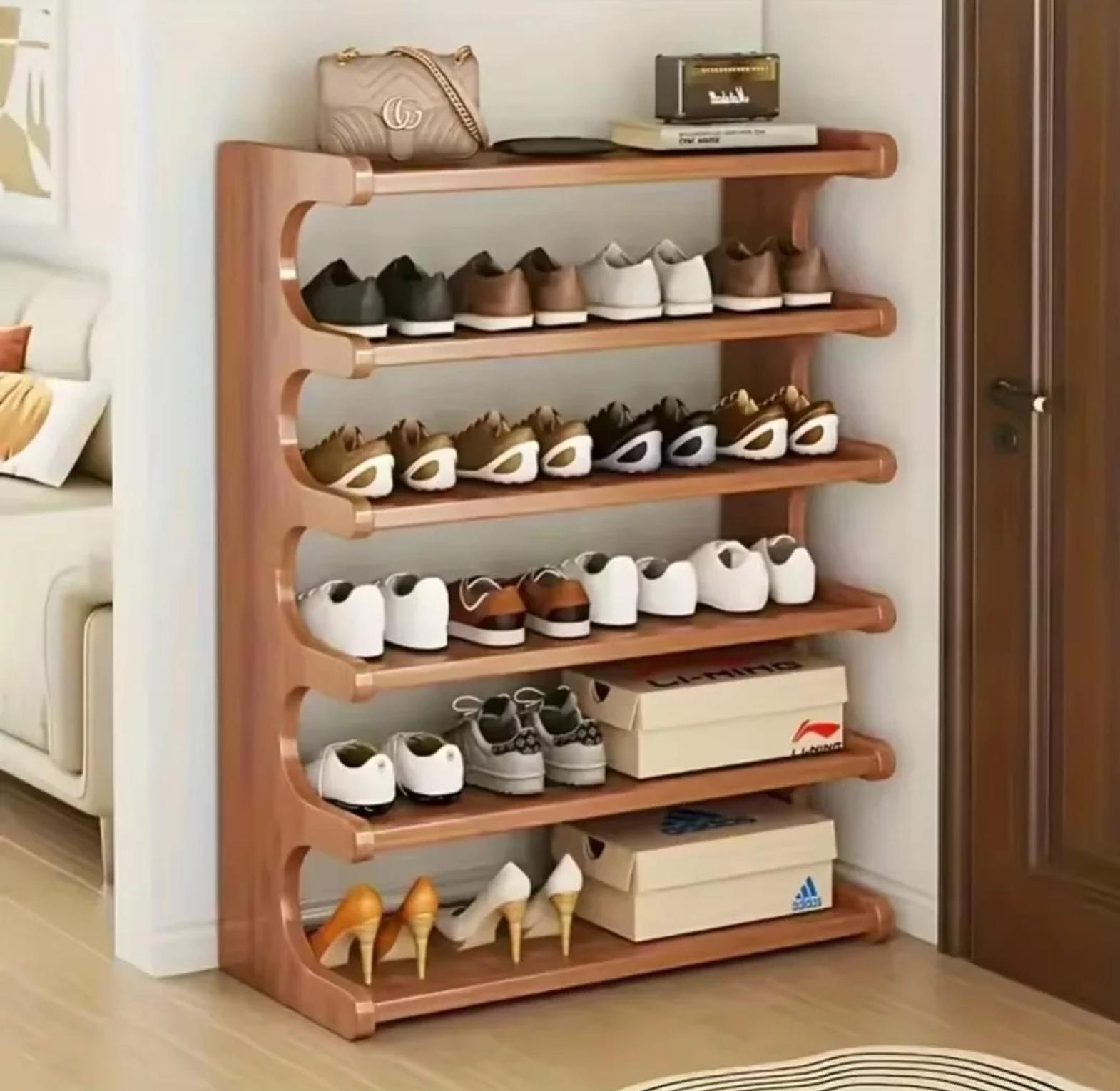 Keep your entryway, closet, or living space impeccably organized with our Multi-Tier Bamboo Shoe Rack with Wavy Design. This elegant and functional storage solution features 6 spacious layers, providing ample room to neatly store multiple pairs of shoes, from sneakers and sandals to heels and boots. Crafted from eco-friendly, durable bamboo, this rack boasts a sturdy construction that ensures long-lasting stability.The unique wavy shelves not only add a distinctive aesthetic appeal but also offer practical support for your footwear. Measuring 83cm (width) x 25cm (depth) x 70cm (height), this space-saving shoe organizer is perfectly sized for apartments, hallways, or any area where efficient shoe storage is needed. Its natural wood finish seamlessly blends with various home decor styles, from modern to rustic. Easy to assemble and maintain, this versatile bamboo rack is an essential home organizing piece that helps eliminate clutter and keeps your footwear accessible and well-preserved.