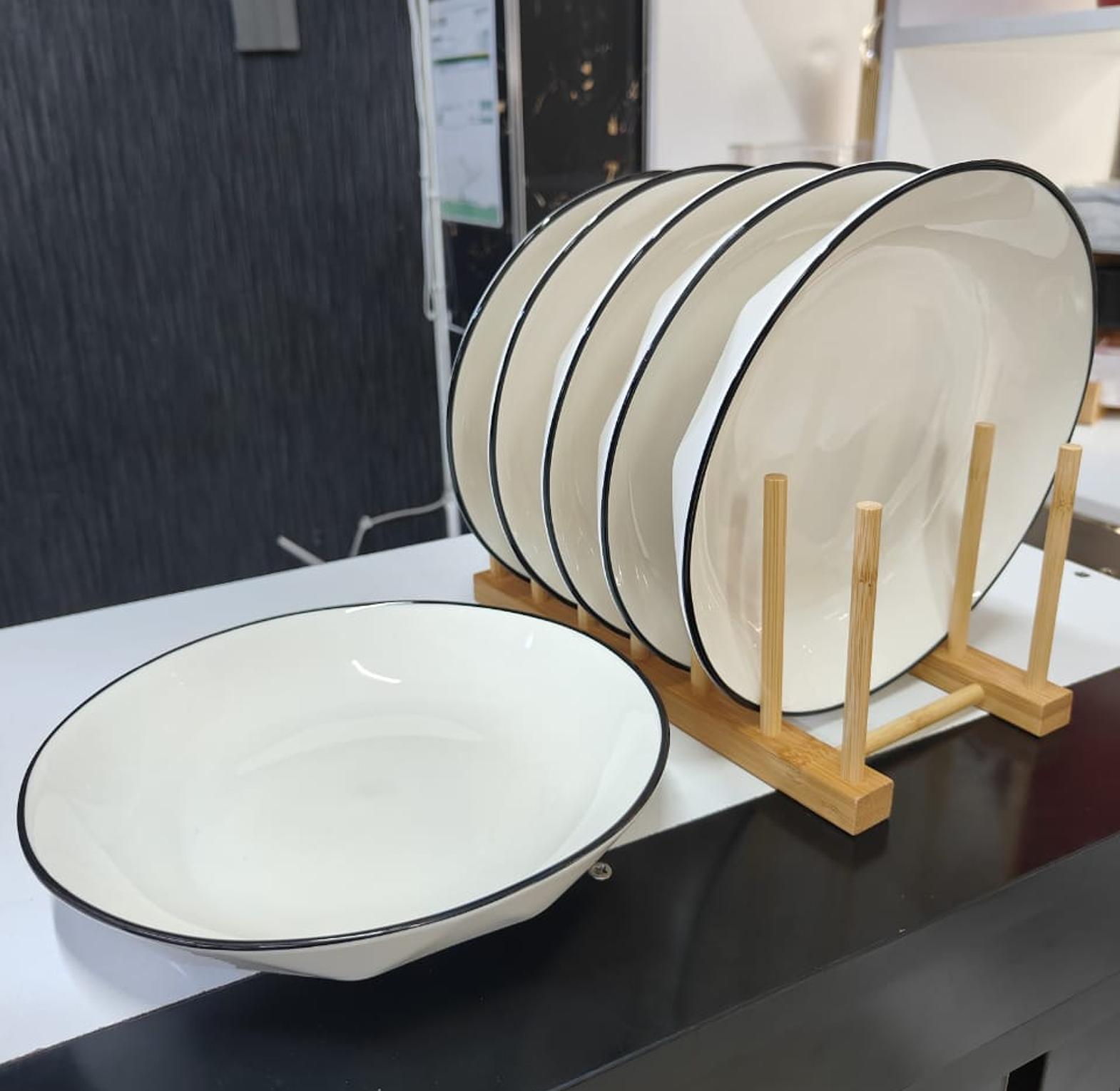 Our 6-piece plate set offers a perfect blend of practicality and elegance, ideal for both casual meals and formal dining. Each plate is crafted from high-quality, durable ceramic, providing a sturdy, chip-resistant surface for long-lasting use. With a sleek, modern design, these plates complement any table setting, adding a touch of sophistication to your dining experience. Whether you're hosting guests or enjoying a family meal, this 6-piece set is versatile, easy to clean, and perfect for enhancing your dinnerware collection.