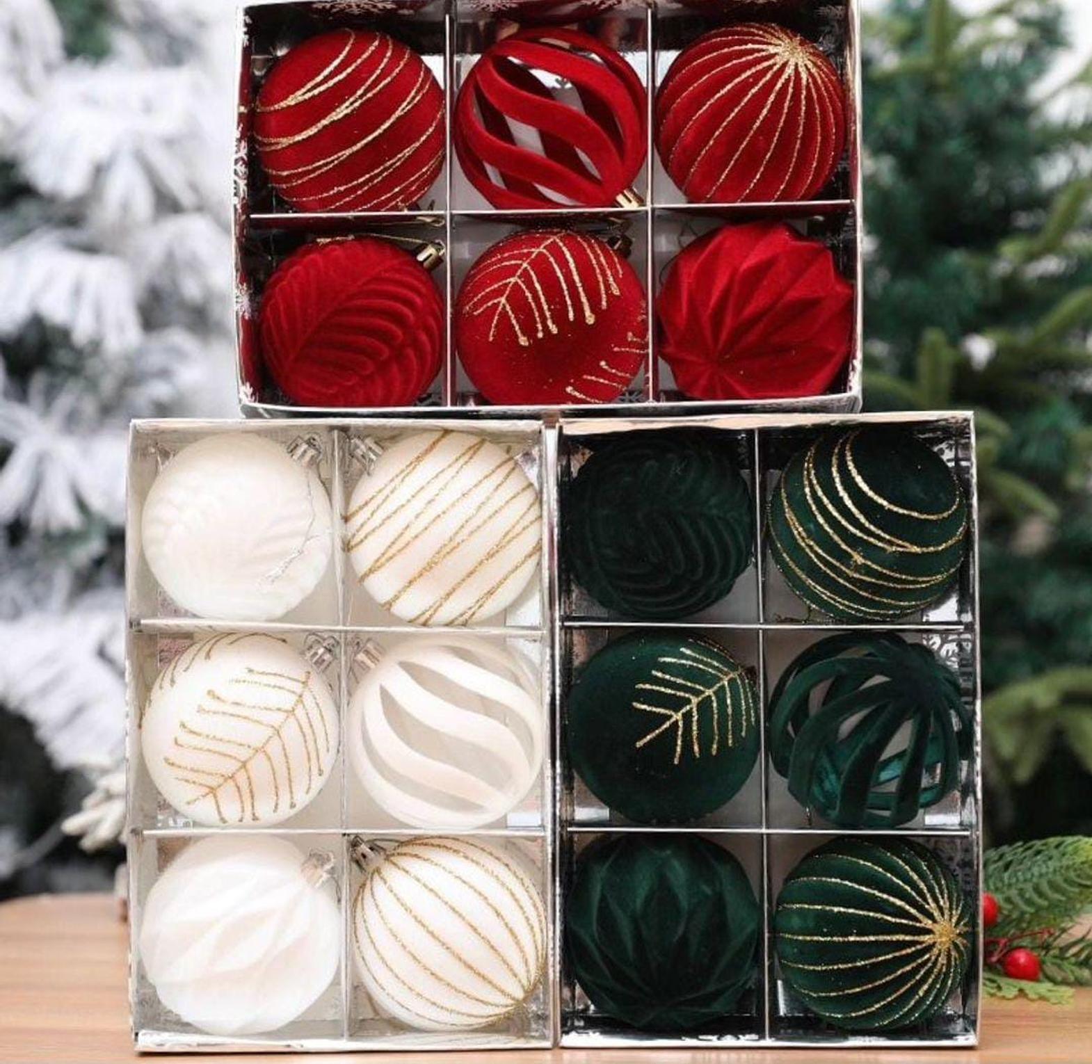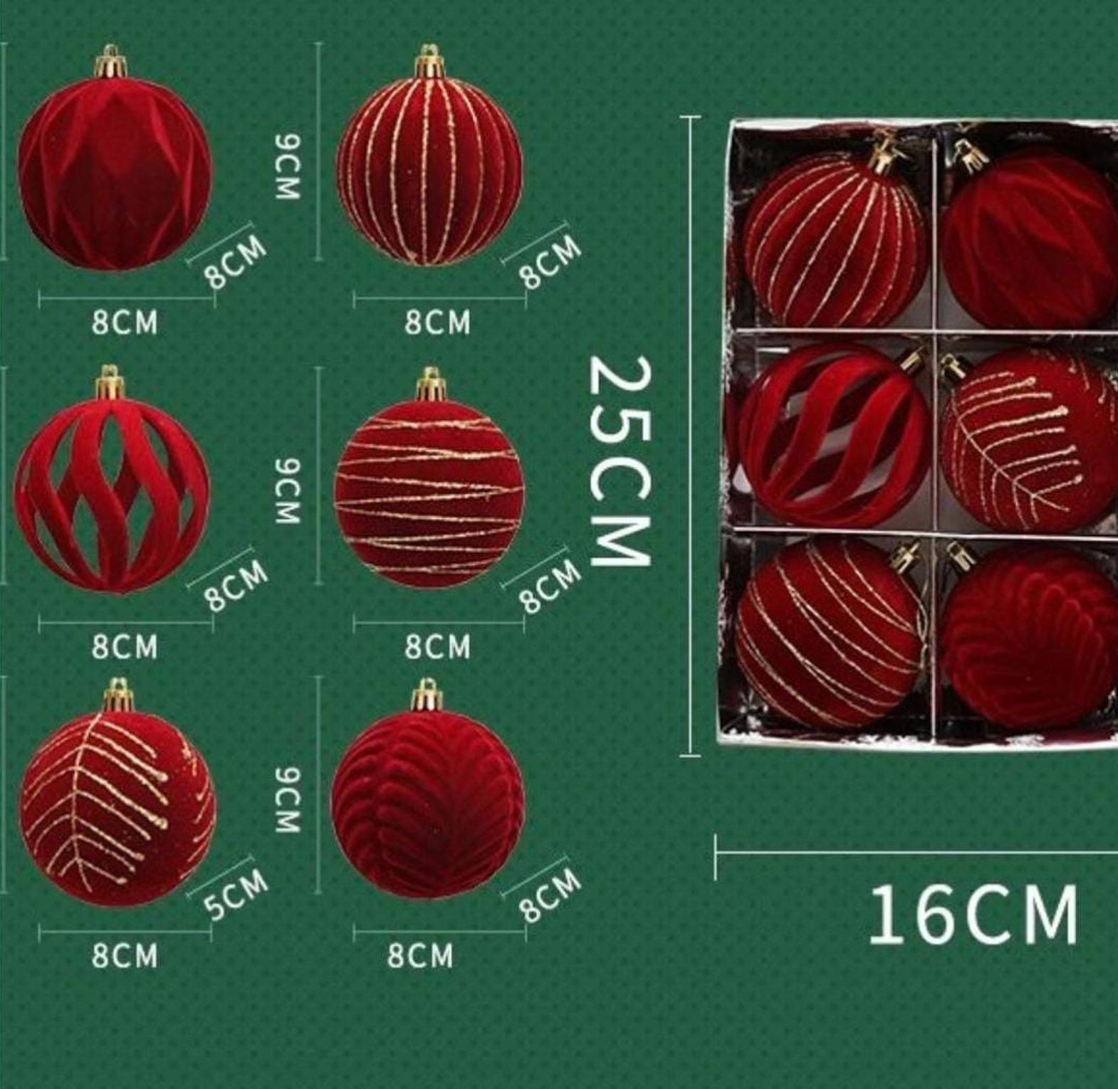 This 6-piece set of Christmas balls offers a beautiful assortment of ornaments that combine different textures, colors, and finishes, creating a dynamic and festive look for your holiday tree. Each ball is carefully crafted with glossy, matte, and glittered surfaces, adding depth and sparkle to your decorations. Whether you prefer classic red, gold, or modern metallics, these ornaments bring a touch of elegance and cheer to your seasonal decor. Durable and designed to last, they are the perfect way to add a personalized, festive touch to any holiday setting, making your tree or mantle shine with seasonal spirit.