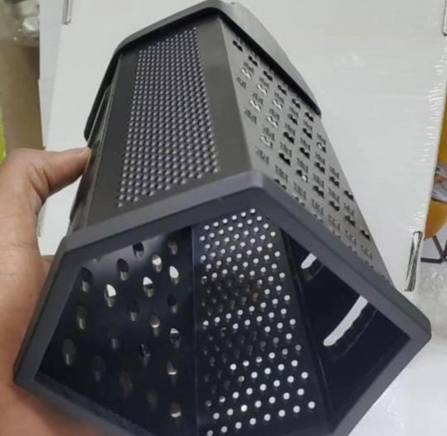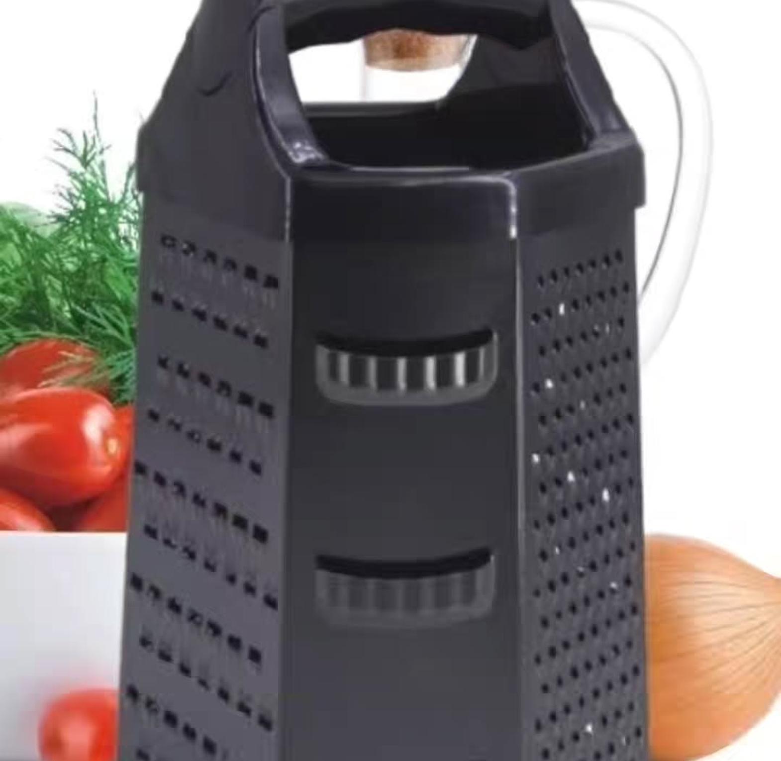 Introducing our 6-Sided Vegetable Grater with an aluminum handle, the essential kitchen tool for all your grating, shredding, and slicing needs. This multifunctional grater boasts six different sides, each tailored for specific tasks—from fine grating for cheese and zesting citrus to coarse shredding for vegetables and even slicing for uniform pieces. The durable aluminum handle provides a comfortable grip, ensuring ease of use while you tackle meal prep with confidence. Made from high-quality stainless steel, the grater is not only robust and rust-resistant but also easy to clean, making it a practical addition to your kitchen. Its compact design allows for easy storage in drawers or cabinets, while the sleek finish adds a touch of modern elegance to your culinary tools. Elevate your cooking experience with this versatile and efficient 6-Sided Vegetable Grater, designed to make food preparation quick and enjoyable.