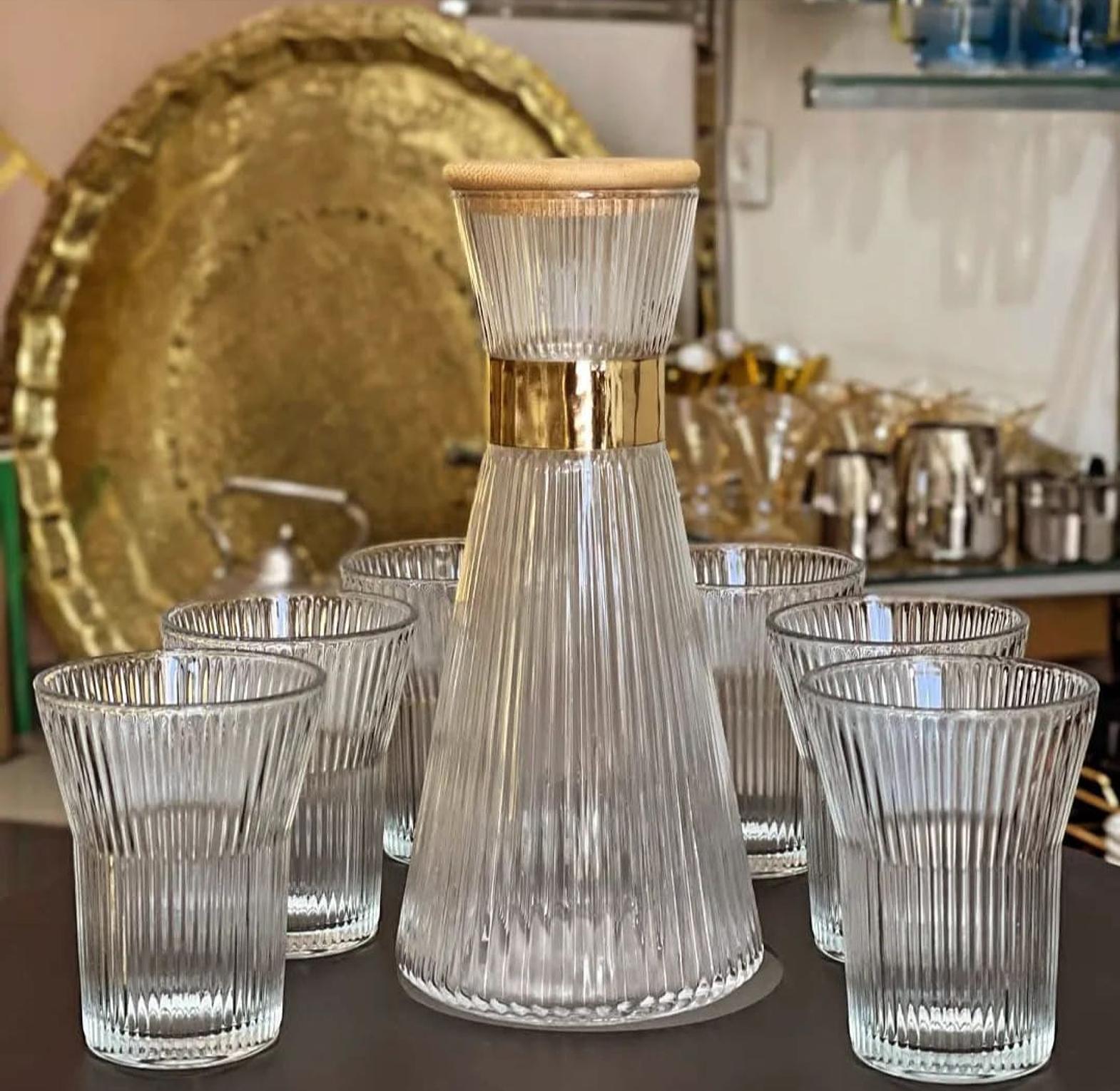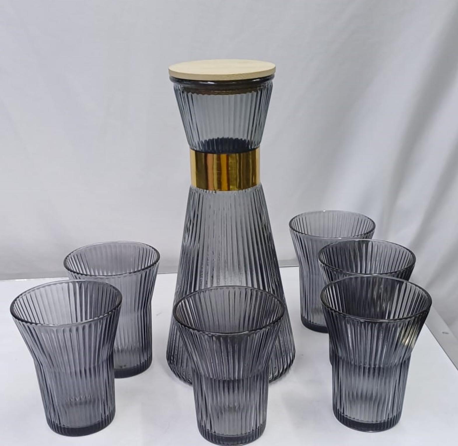 Elevate your dining experience with our elegant 7-piece Nordic water set, featuring a sleek black design. This set includes six 250ml glasses and a 1000ml decanter, all crafted from durable, high-quality glass. The minimalist yet stylish design complements both modern and classic table settings, making it perfect for entertaining guests or daily use. The 1000ml decanter allows for easy serving, while the matching glasses bring a touch of Nordic elegance to your drinkware collection. Ideal for water, juice, or any beverage, this set offers both practicality and style, making it a must-have for your home.