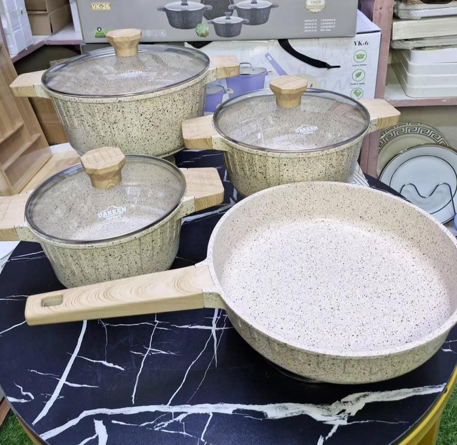 Our 7-piece Cookware Set (VK 26) is a complete kitchen essential, offering high-quality, durable pieces for all your cooking needs.