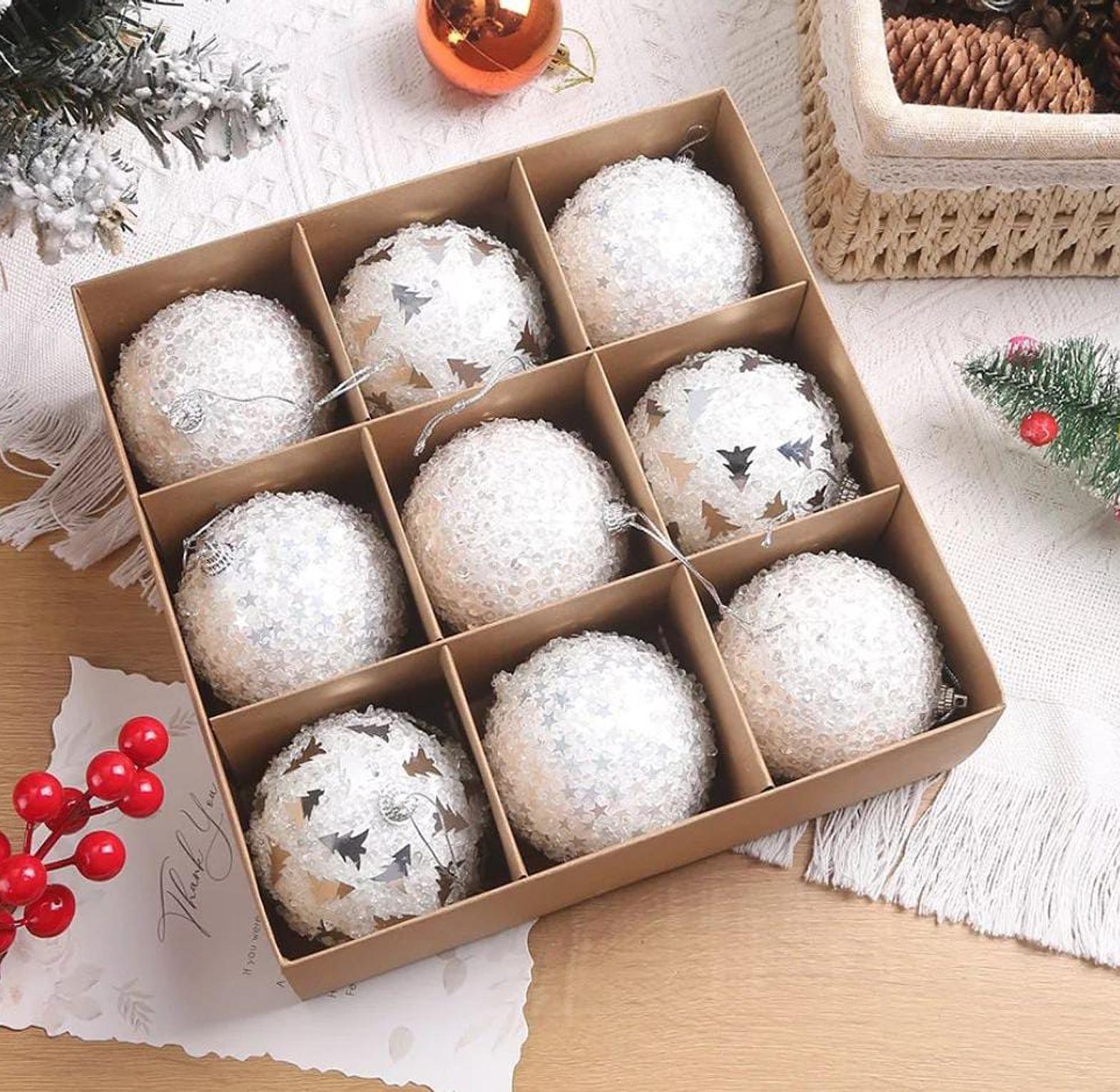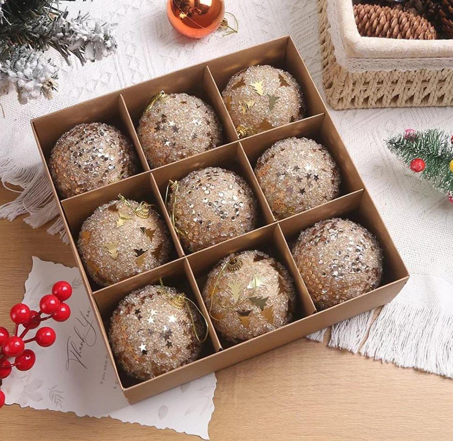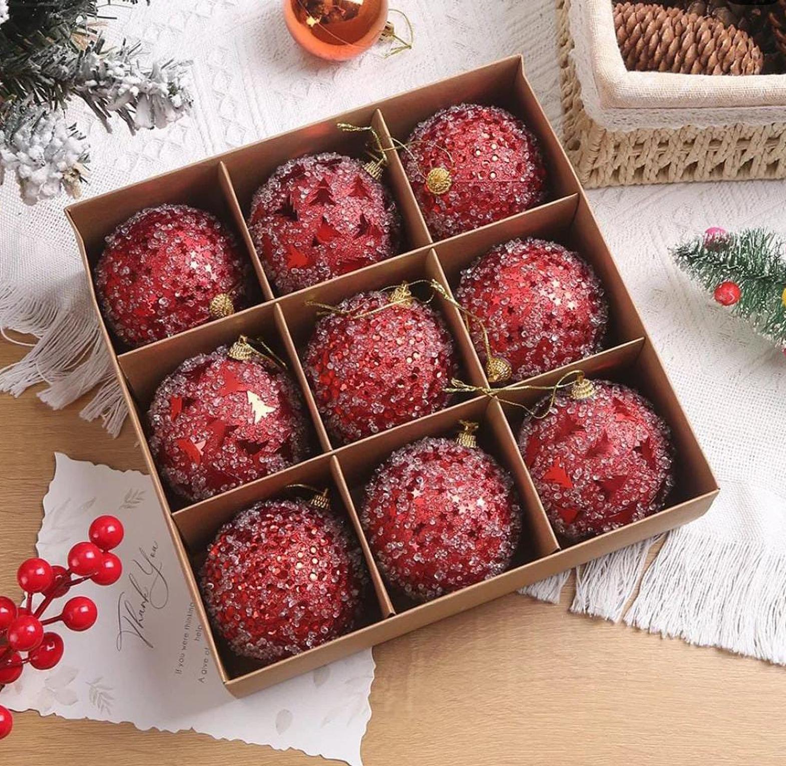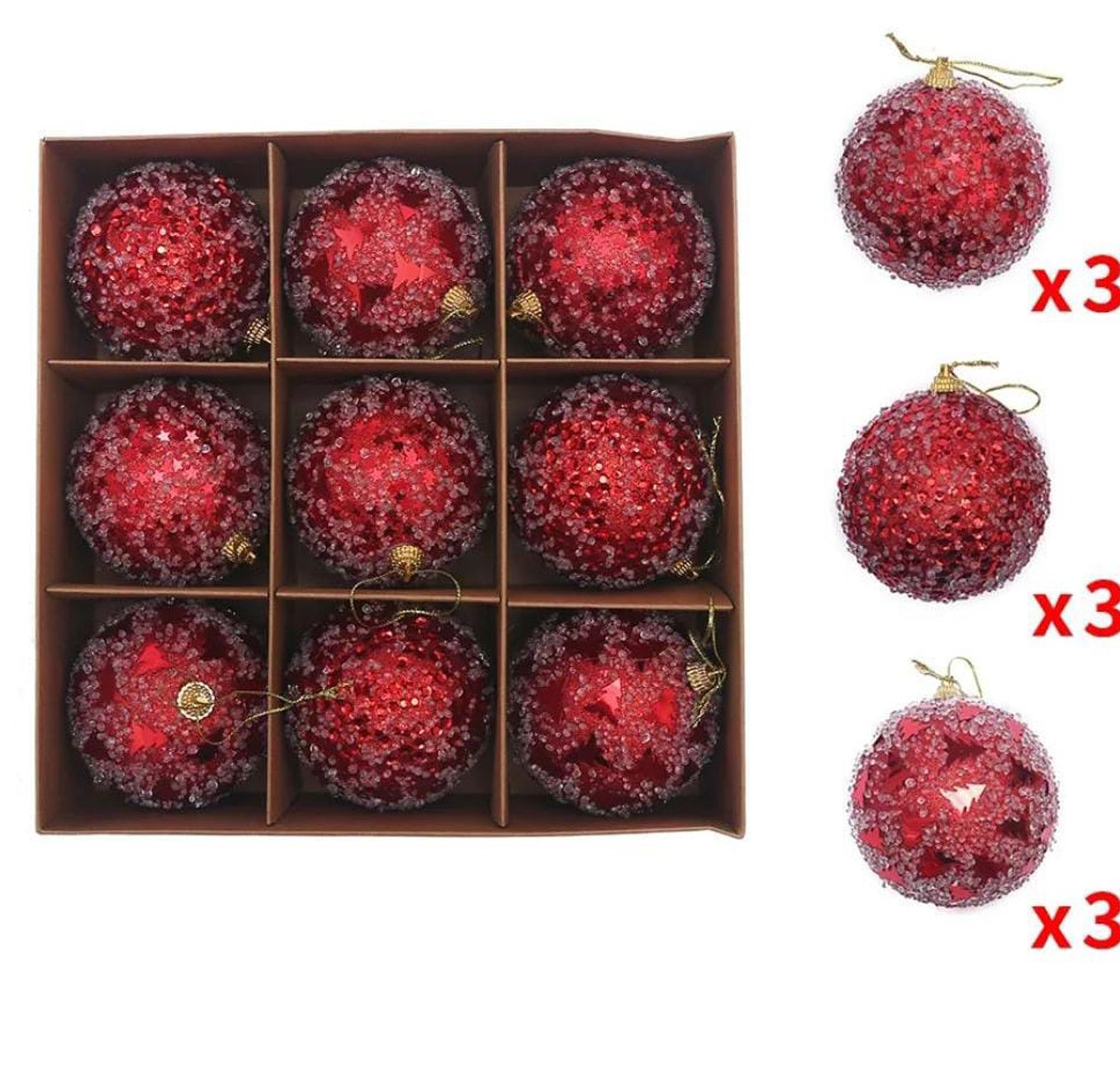 Our 9-piece Christmas ball set offers a charming collection of ornaments that enhance your tree with a blend of classic elegance and festive sparkle. Crafted from high-quality materials, each ball comes in a variety of finishes, from shimmering metallics to vibrant colors, providing the perfect accents for your holiday decor. Whether you're aiming for a traditional look or a more modern style, this set offers versatility in design and helps create a cohesive, eye-catching display. These Christmas balls make decorating your tree effortless, filling your home with the warmth and joy of the season.