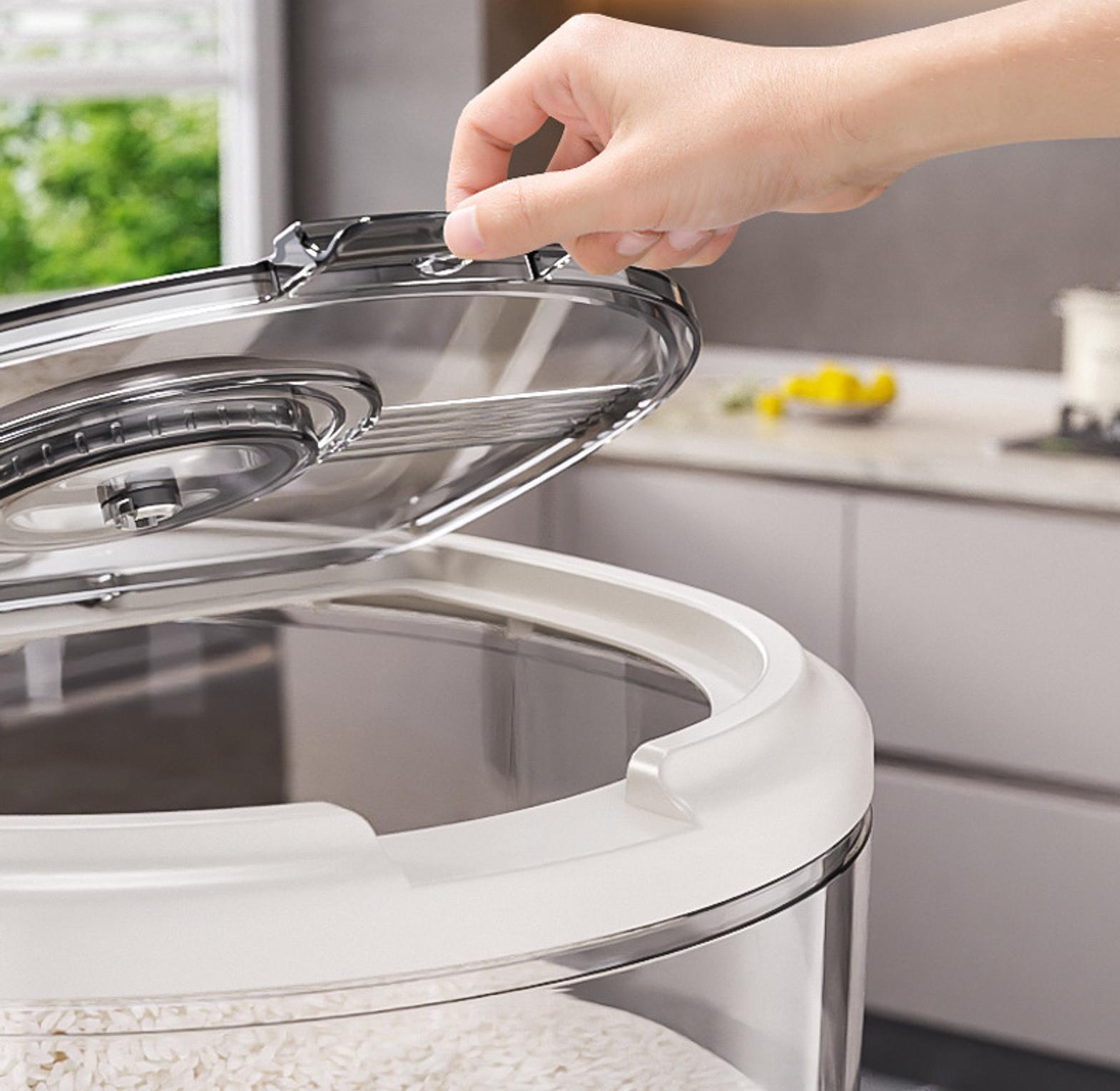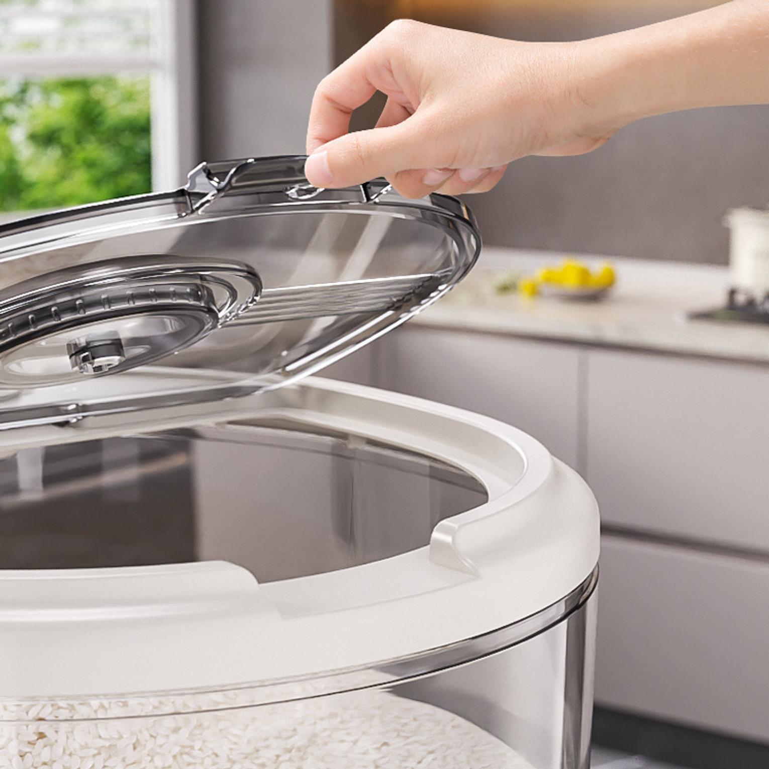 The secure sealing lid locks in freshness, and the transparent body lets you easily see the contents. Perfect for storing rice, cereals, flour, or grains.