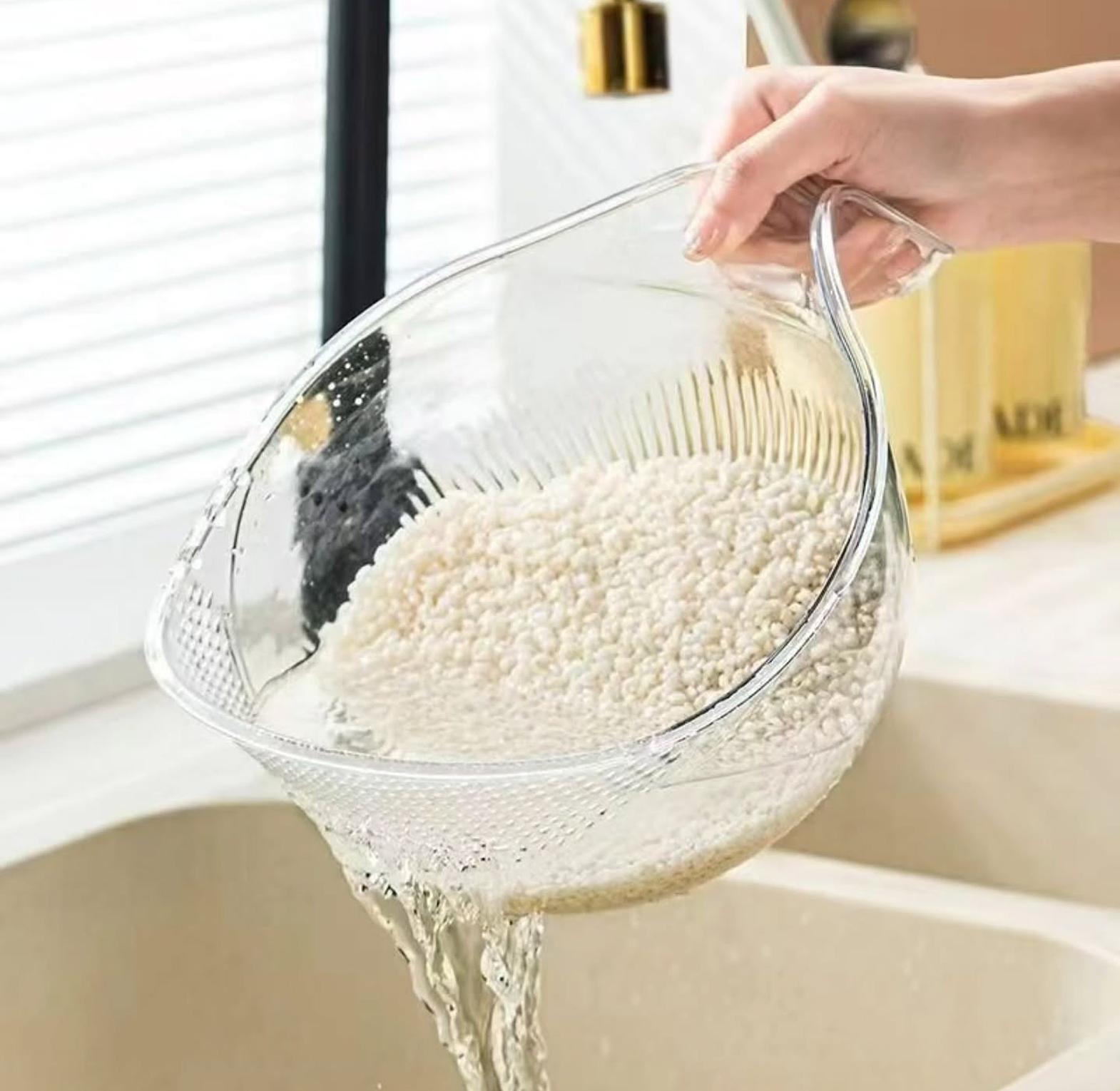 Simplify your kitchen routine with the acrylic rice washing bowl and colander, designed for easy rinsing, soaking, and draining of rice, grains, vegetables, and fruits. Made from high-quality acrylic, it is sturdy, lightweight, and built for long-lasting use. Its smart design allows water to drain efficiently while preventing food from spilling, making meal prep quicker and more convenient. Available in clear and grey, this versatile bowl is a must-have kitchen essential that combines practicality with modern style.