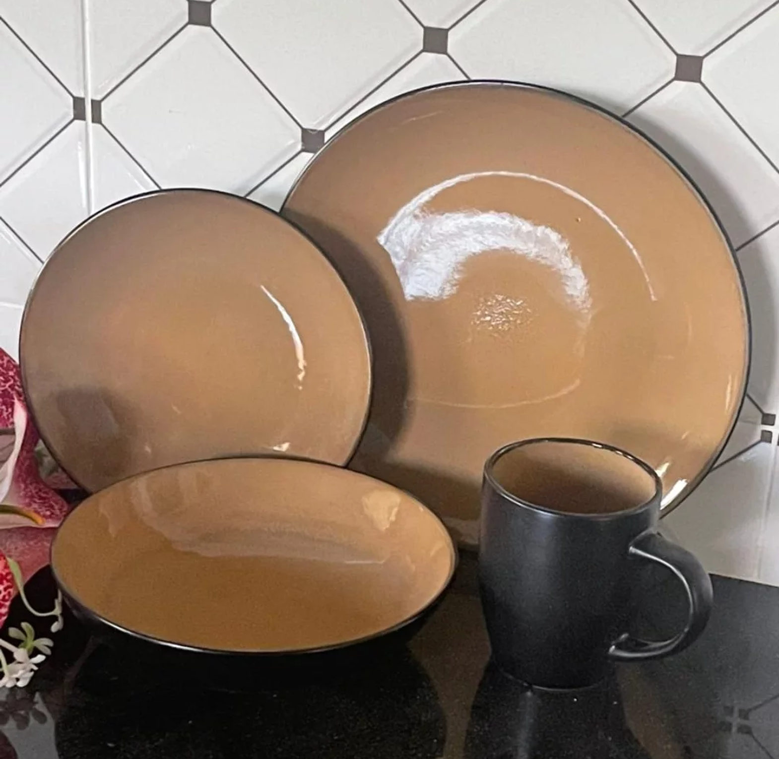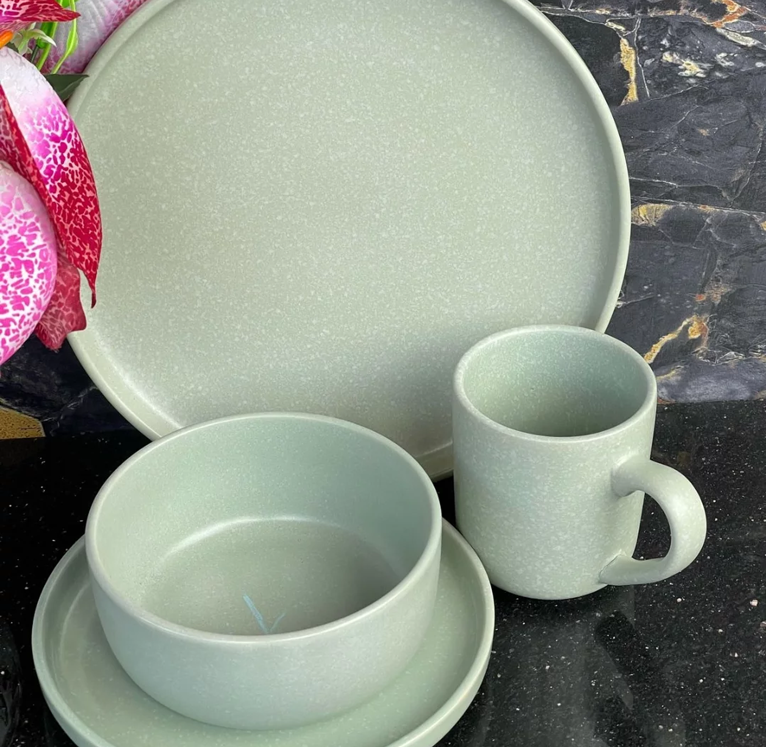 This comprehensive 24-piece ceramic dinner set provides a complete and stylish table setting for six people. The collection includes six full-sized dinner plates, six versatile side plates, six deep bowls perfect for soups and cereals, and six matching cups for beverages. This tableware is constructed from high-quality ceramic material known for its robustness and ability to retain heat. It is available in a sophisticated variety of color options, including rich Maroon, fresh Mint Green, deep Brown Black, classic White, and clean Blue White, allowing for personalization or mixing and matching. This durable and aesthetically pleasing set is designed to enhance the dining experience in modern homes across the region.