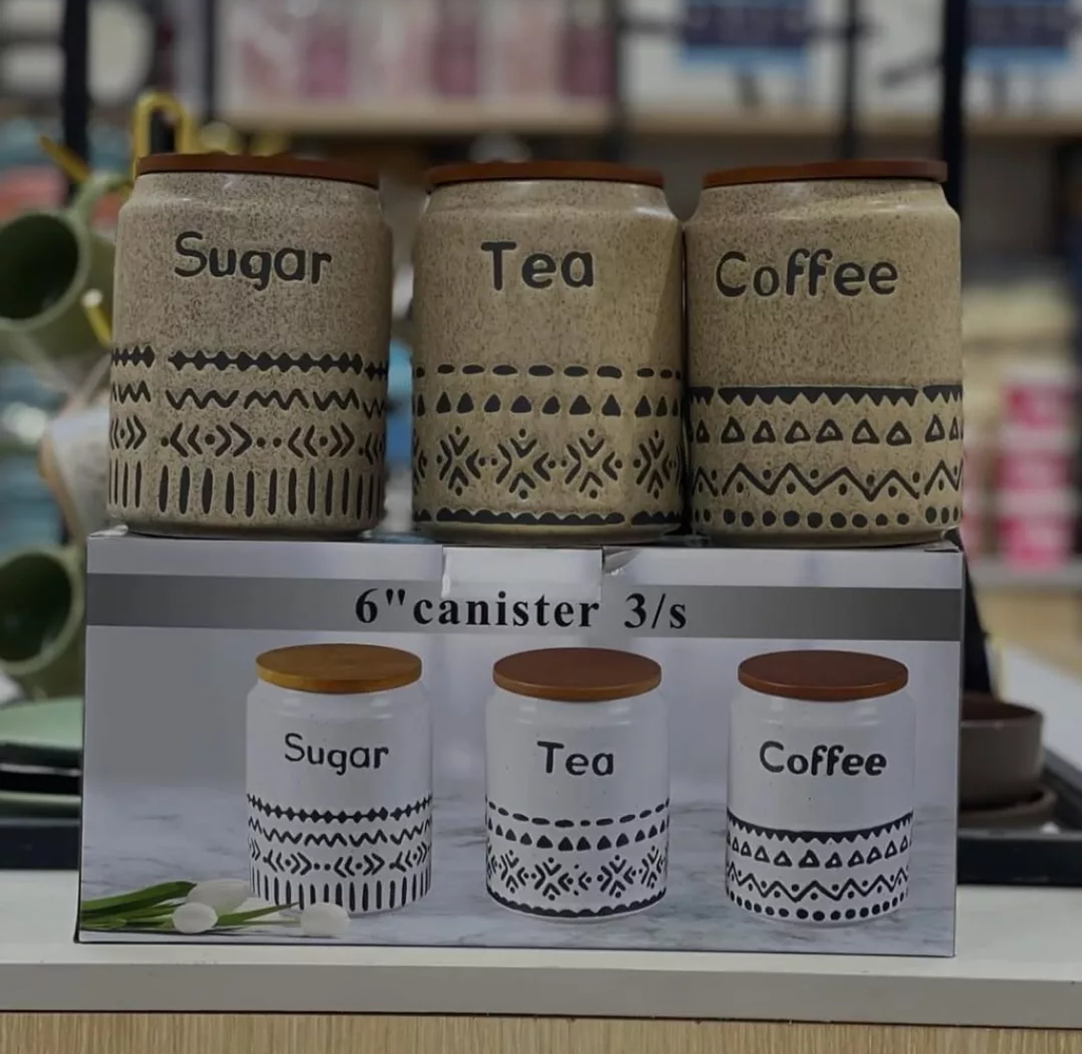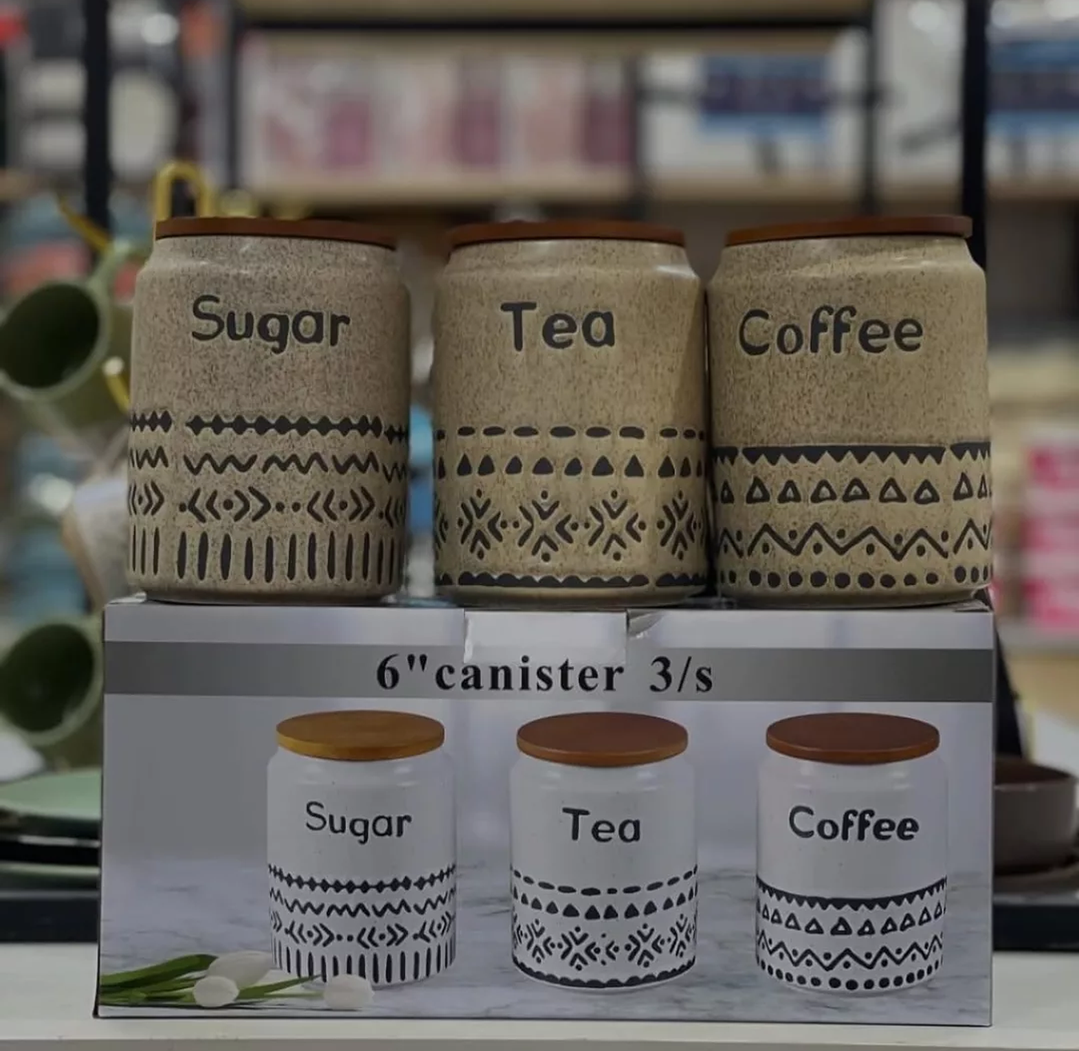 Elevate your kitchen counter organization with this charming 3-piece set of ceramic canisters, designed for both aesthetic appeal and reliable food preservation. Each piece is crafted from durable, high-quality ceramic in warm brown tones, finished with unique, hand-applied-look artisan patterns that add a captivating visual texture to your space. A vital feature of these containers is the airtight seal provided by the wooden lids, which effectively locks in freshness and protects the contents from moisture and air, making them perfect for storing kitchen staples like sugar, tea, and coffee. These canisters are not just storage solutions; they are stylish, functional accents that bring a touch of unique, earthy elegance to any modern or rustic kitchen environment.