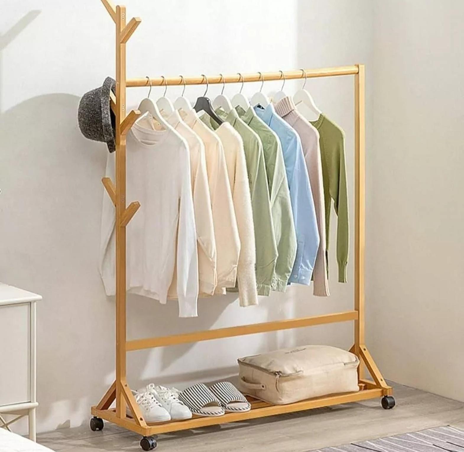Introduce a touch of sustainable elegance and smart organization into your home with our Natural Bamboo Freestanding Clothes Rack with Shelves. Crafted entirely from premium bamboo material, this rack is not only environmentally friendly but also inherently strong, sturdy, and remarkably durable, promising years of reliable use.