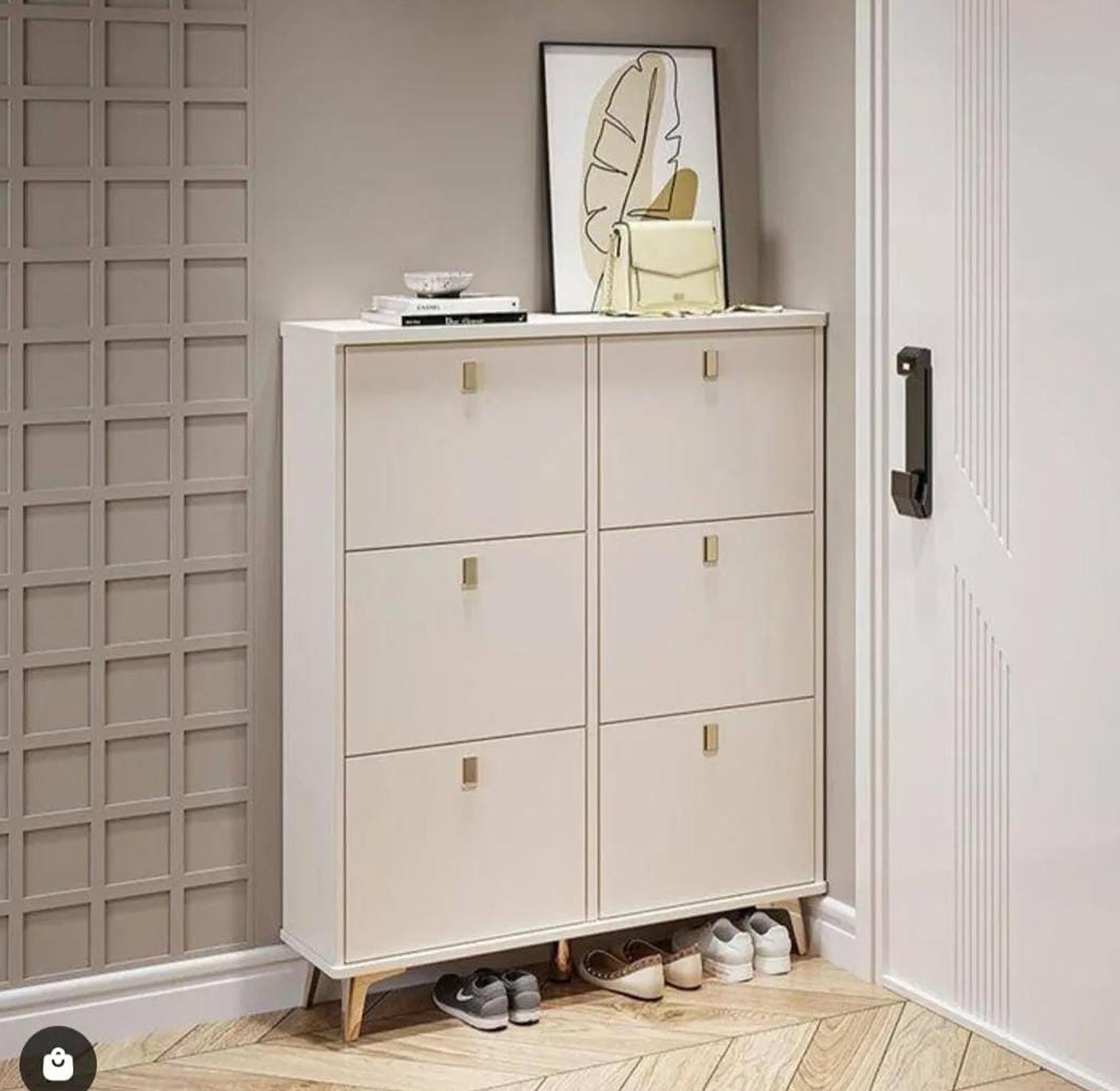 This innovative triple-layer bucket flip shoe rack combines practicality with modern design, offering a sleek and space-saving solution for your footwear storage needs. With three spacious flip compartments, it easily accommodates multiple pairs of shoes, from sneakers to sandals, while keeping them neatly organized and protected from dust. The added hanger feature provides extra storage for items like scarves, hats, or accessories, making it a perfect addition to any entryway, closet, or bedroom. The rack's compact design allows it to fit seamlessly into small spaces, while the sturdy construction ensures long-lasting durability. Whether you’re organizing seasonal shoes or keeping your everyday footwear accessible, this rack offers both convenience and style.