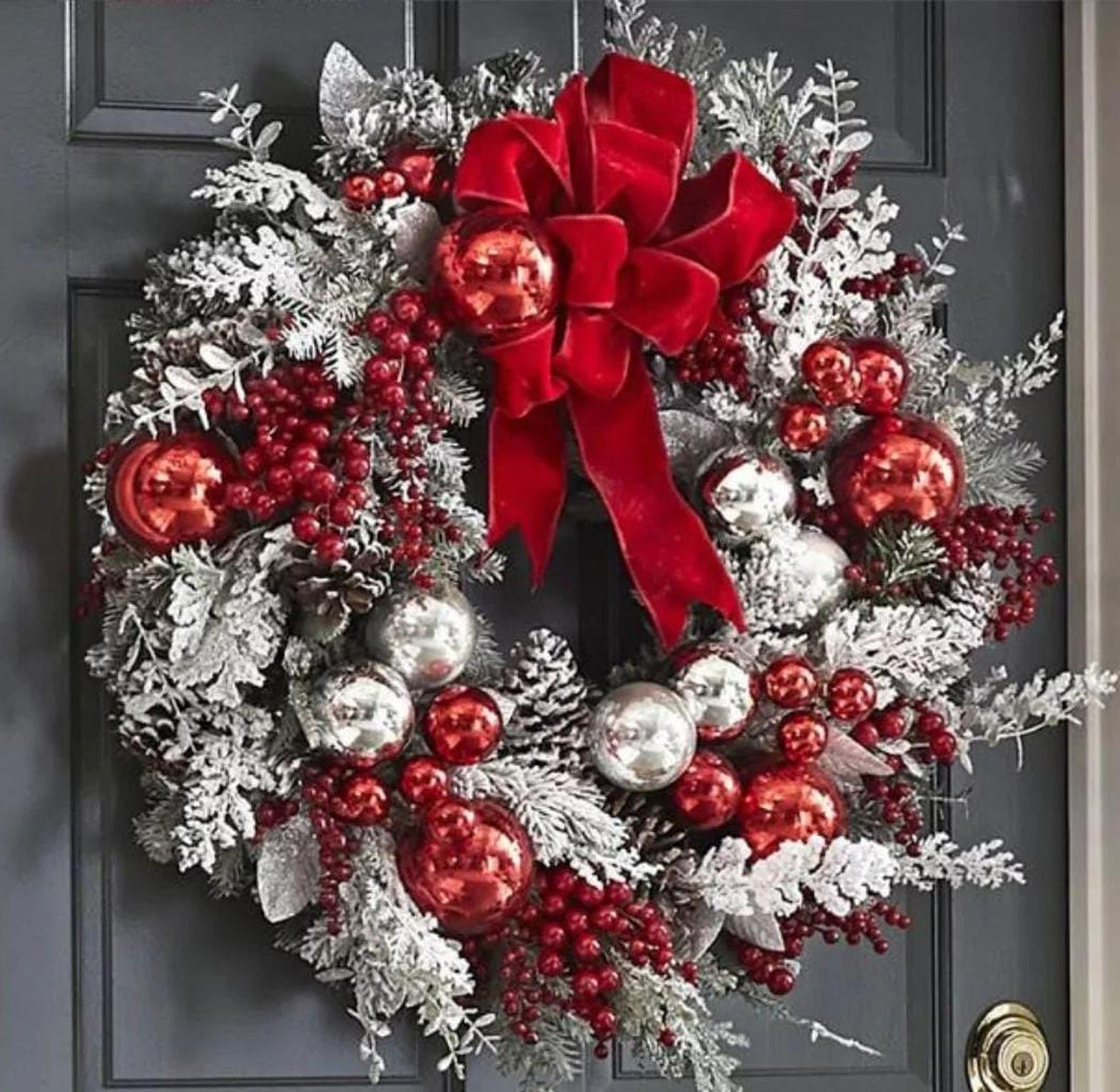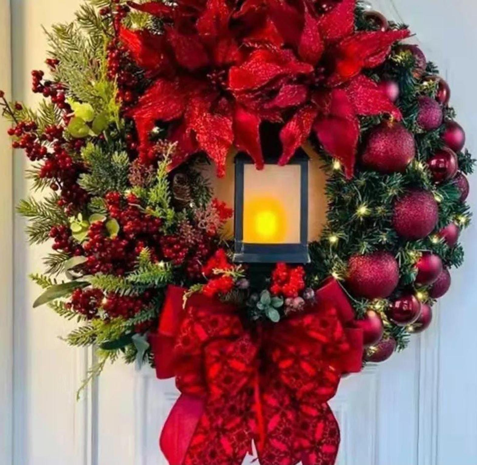 Our Christmas door wreath decor is the perfect way to greet guests and set a joyful tone for the season. Crafted with lush greenery, vibrant red berries, pinecones, and sparkling accents, this wreath captures the essence of a festive winter landscape. Its durable construction ensures it can withstand the elements, making it ideal for both indoor and outdoor use. Whether hung on your front door, in a hallway, or above a fireplace, this wreath instantly enhances your home’s holiday appeal, creating a warm, welcoming atmosphere that embraces the spirit of Christmas.
