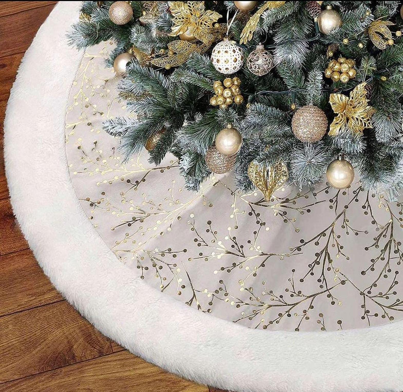 This Christmas tree skirt is the perfect addition to complete your holiday decor, crafted with high-quality materials that bring warmth and charm to your Christmas tree. Featuring a rich, textured fabric and festive colors or patterns, it not only enhances the base of your tree but also helps protect your floor from fallen needles or tree sap. Whether adorned with shimmering accents, plaid prints, or a simple elegant design, this tree skirt complements a variety of holiday themes, creating a cozy, festive foundation for your tree and gifts. Its timeless appeal makes it a cherished part of your seasonal decor for years to come.