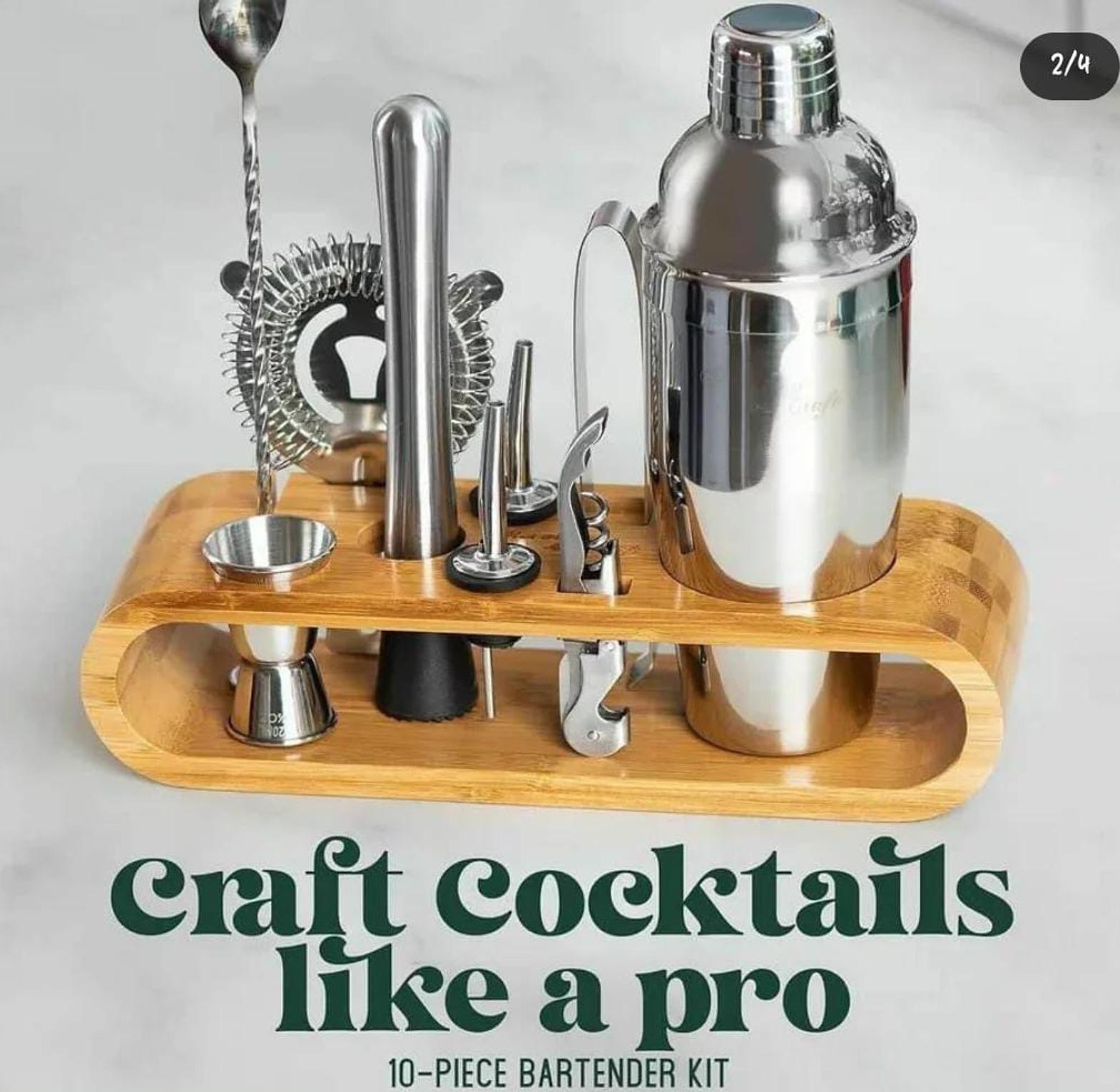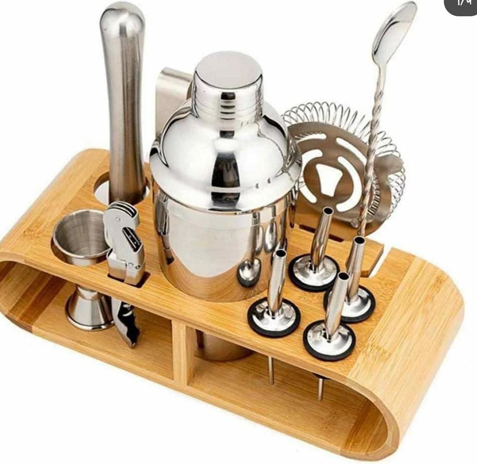 Elevate your cocktail-making experience with this premium cocktail shaker set, crafted for both novice and seasoned mixologists. This set includes all the essential tools needed to shake, stir, and serve your favorite cocktails with style and precision. The shaker itself is built for smooth, leak-proof mixing, ensuring a perfect blend every time. With its sleek and durable design, the set is as visually appealing as it is functional, featuring high-quality stainless steel pieces that resist tarnishing and wear. Whether you're shaking up a classic martini or creating new signature drinks, this cocktail shaker set brings bar-quality craftsmanship to your home, making it the ideal gift for cocktail enthusiasts or anyone who loves to entertain.