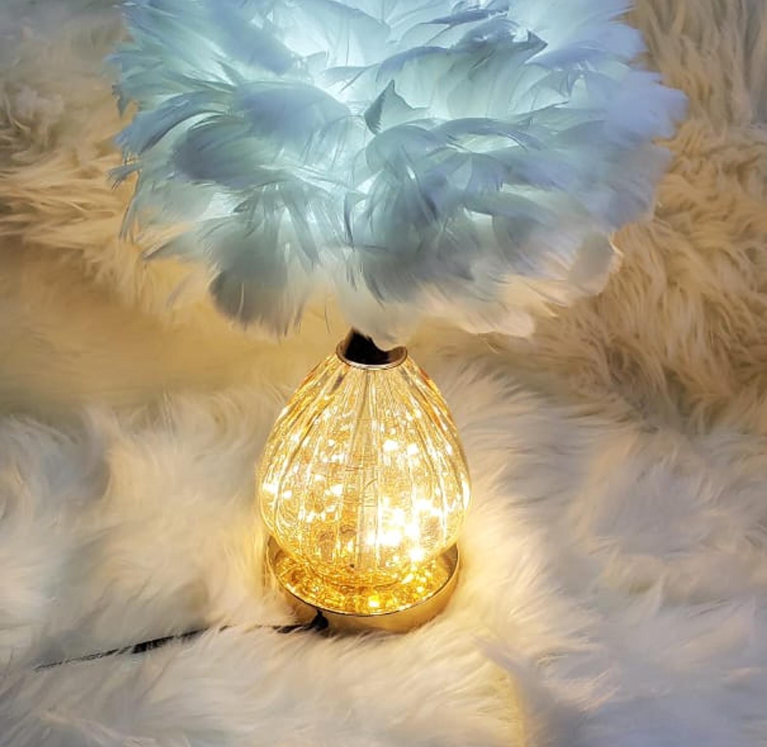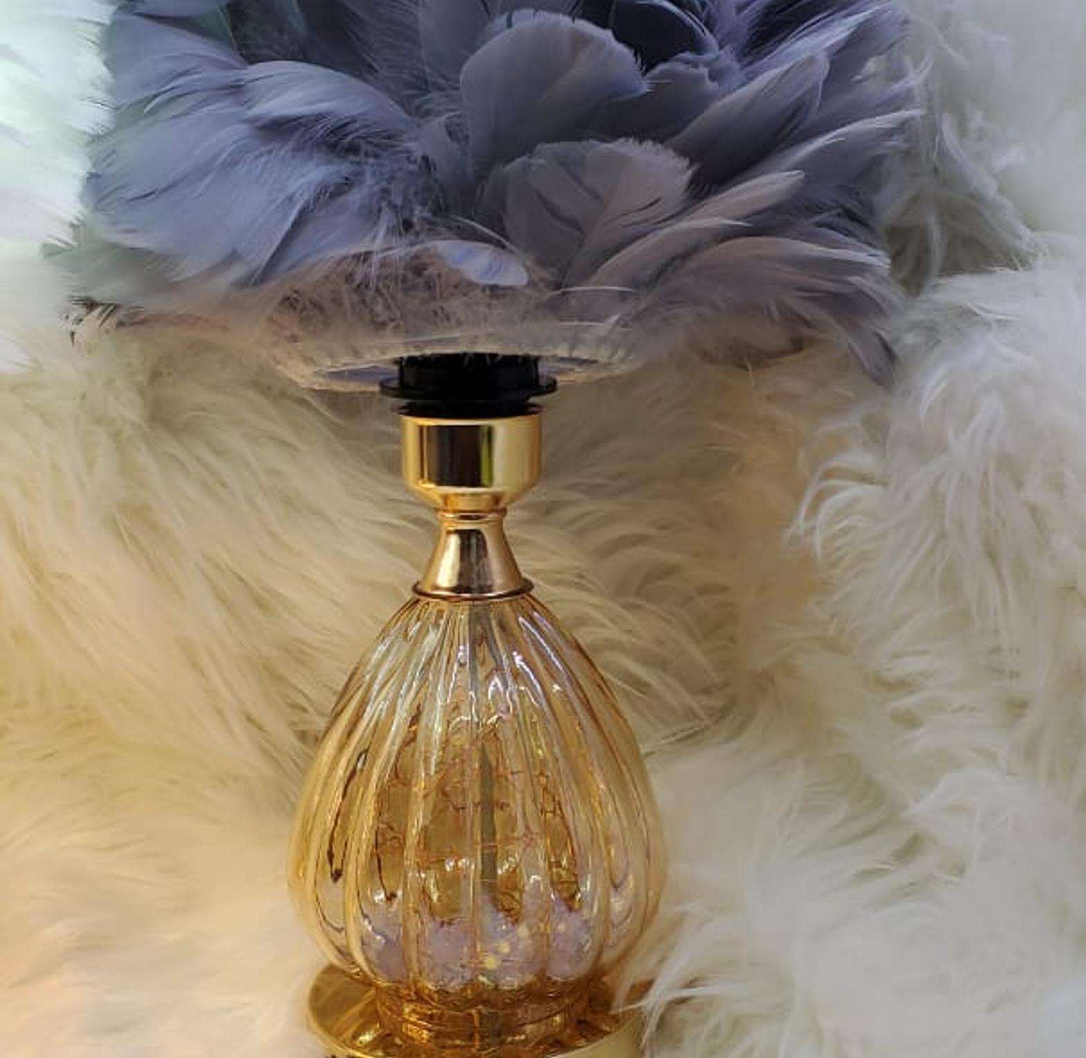 Introducing the Crystal Feather Table Lamp, a stunning decorative piece that combines sophistication with modern design. This exquisite lamp features soft, luxurious feathers available in white, pink, and grey, creating a dreamy and ethereal ambiance for any room. The lamp's base is available in a variety of styles, offering options that suit your taste—whether you're looking for a sleek metallic finish, a crystal-clear stand, or a chic marble base.