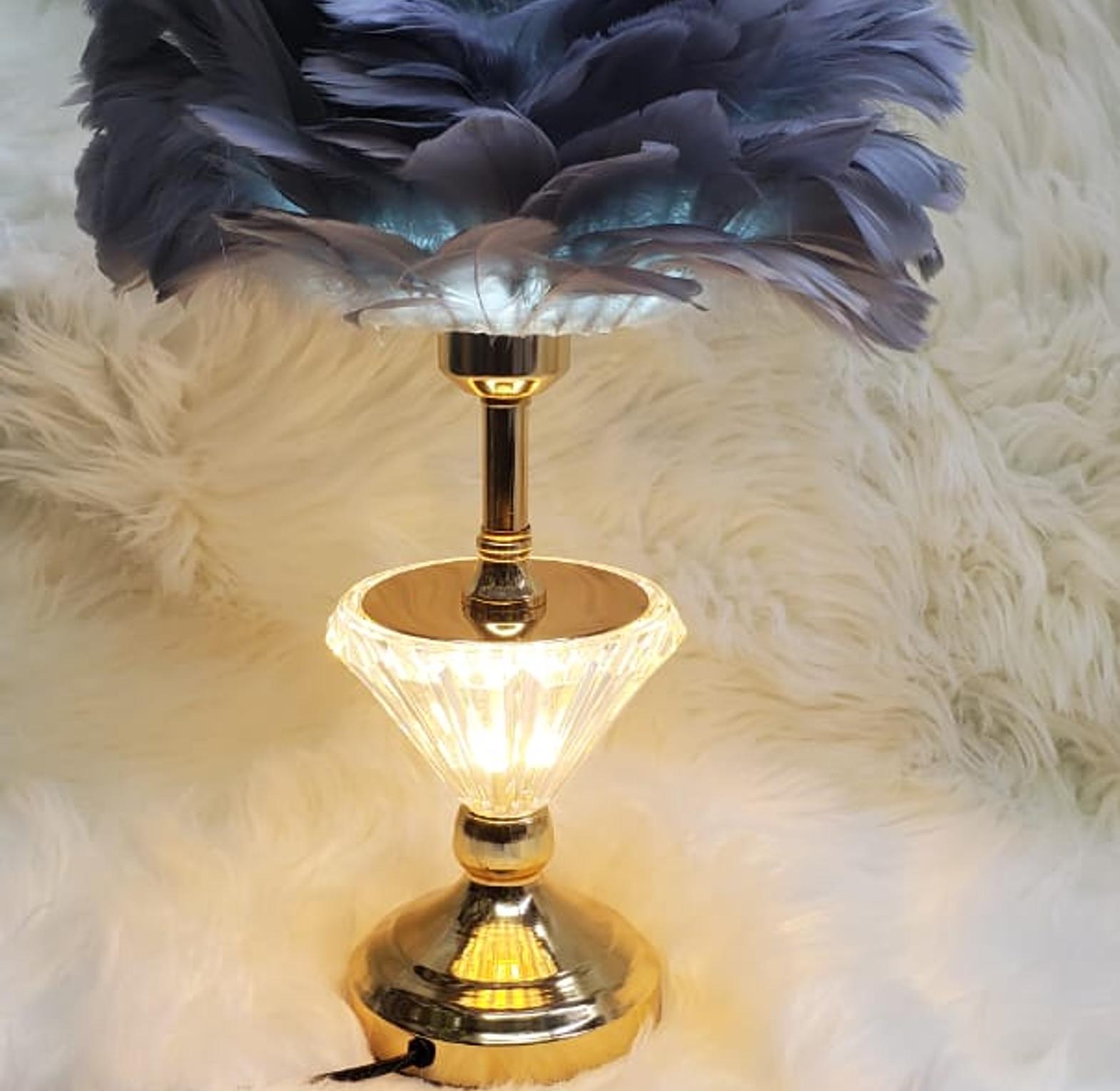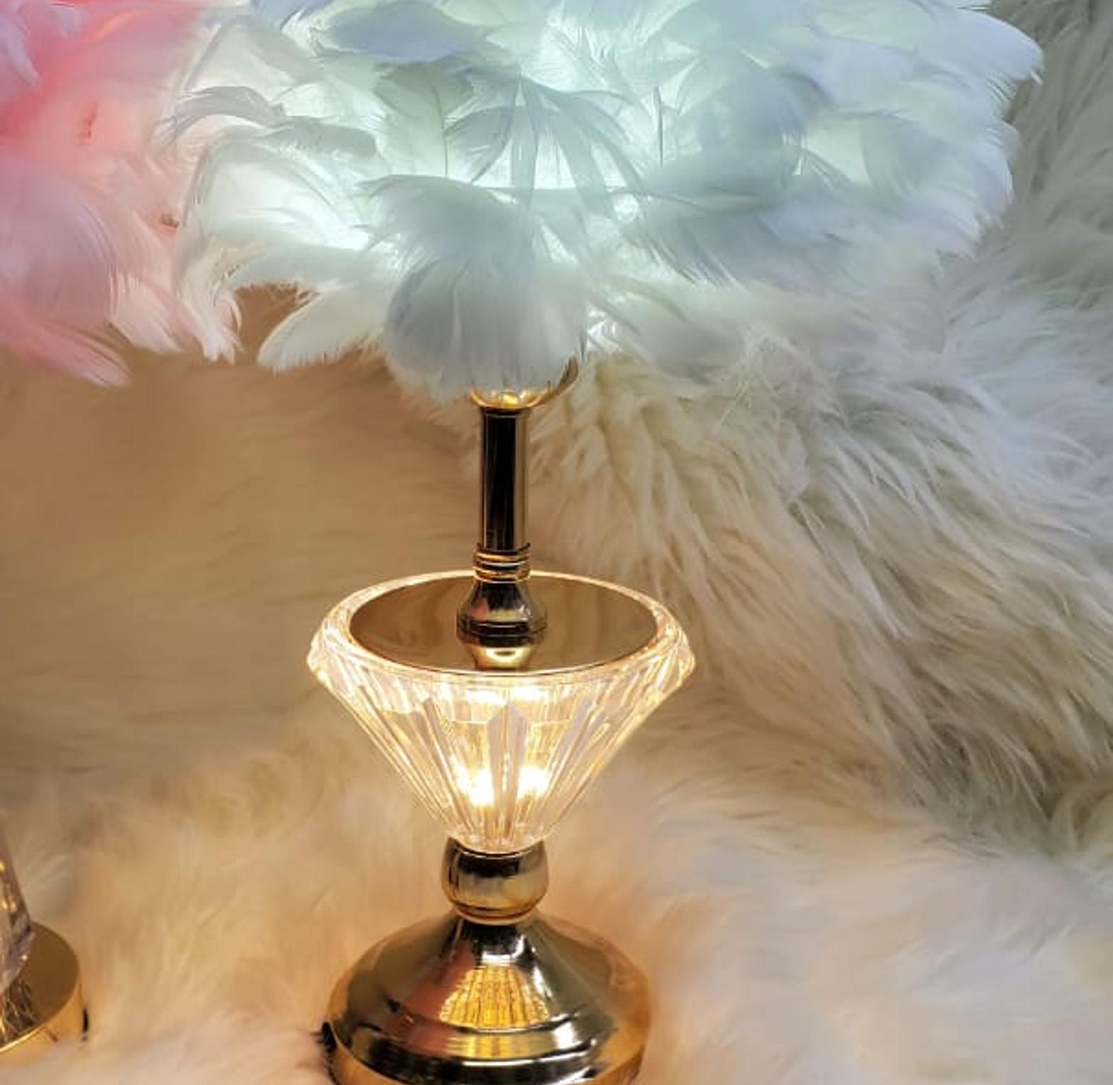 Perfect for bedside tables, living rooms, or entryways, the Crystal Feather Lamp creates a warm and inviting atmosphere with its soft lighting. The elegant feathers add texture and visual appeal, making it a true statement piece for your home. Ideal for those looking to elevate their interior design, this lamp combines practicality with high-end aesthetics, offering both beauty and functionality.