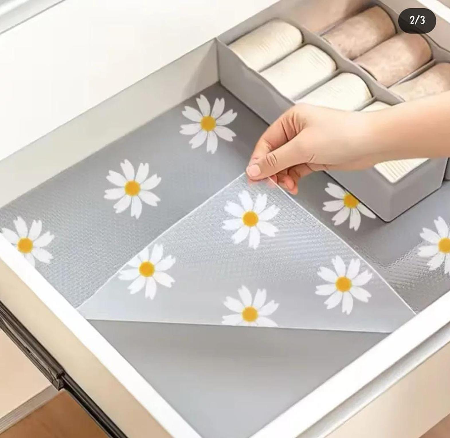 These liners not only protect your drawers and shelves from spills, stains, and scratches but also add a touch of charming style with their adorable daisy pattern. Made from oil-proof and moisture-resistant material, they're easy to clean and maintain, ensuring your cabinets stay looking their best. Whether you're organizing your kitchen, updating your décor, or simply want to add a touch of whimsy to your space, our Daisy Pattern Kitchen Drawer Liners are the perfect solution.