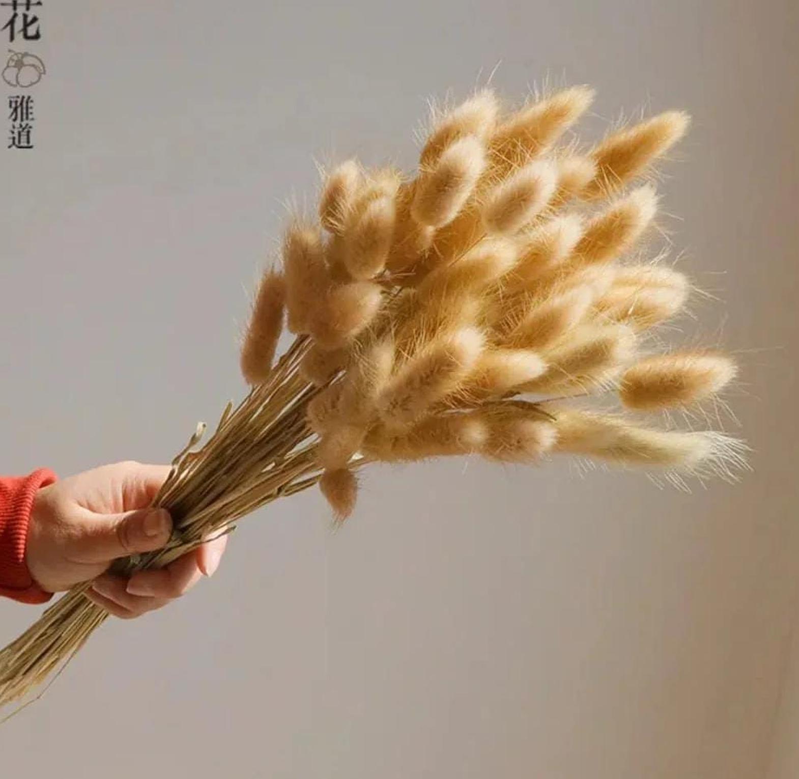 Bring warmth and texture to your home with dried natural bunny tail grass, a timeless decorative element that blends effortlessly with any interior style. Featuring soft, fluffy plumes in neutral tones, this grass adds an airy, organic charm to vases, centerpieces, and floral arrangements. Its long-lasting, low-maintenance nature makes it ideal for enhancing living rooms, bedrooms, or event décor without the need for watering or upkeep. Whether used alone for a minimalist touch or mixed with other dried flowers, bunny tail grass brings a cozy, bohemian elegance to any space.