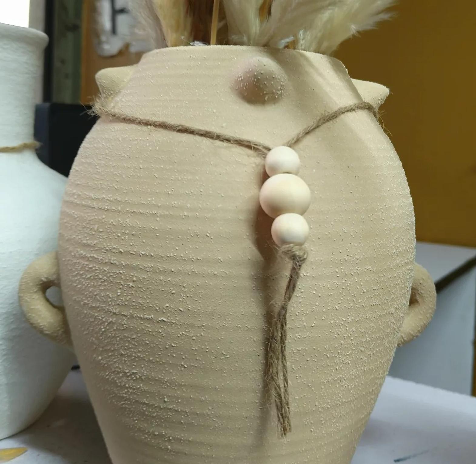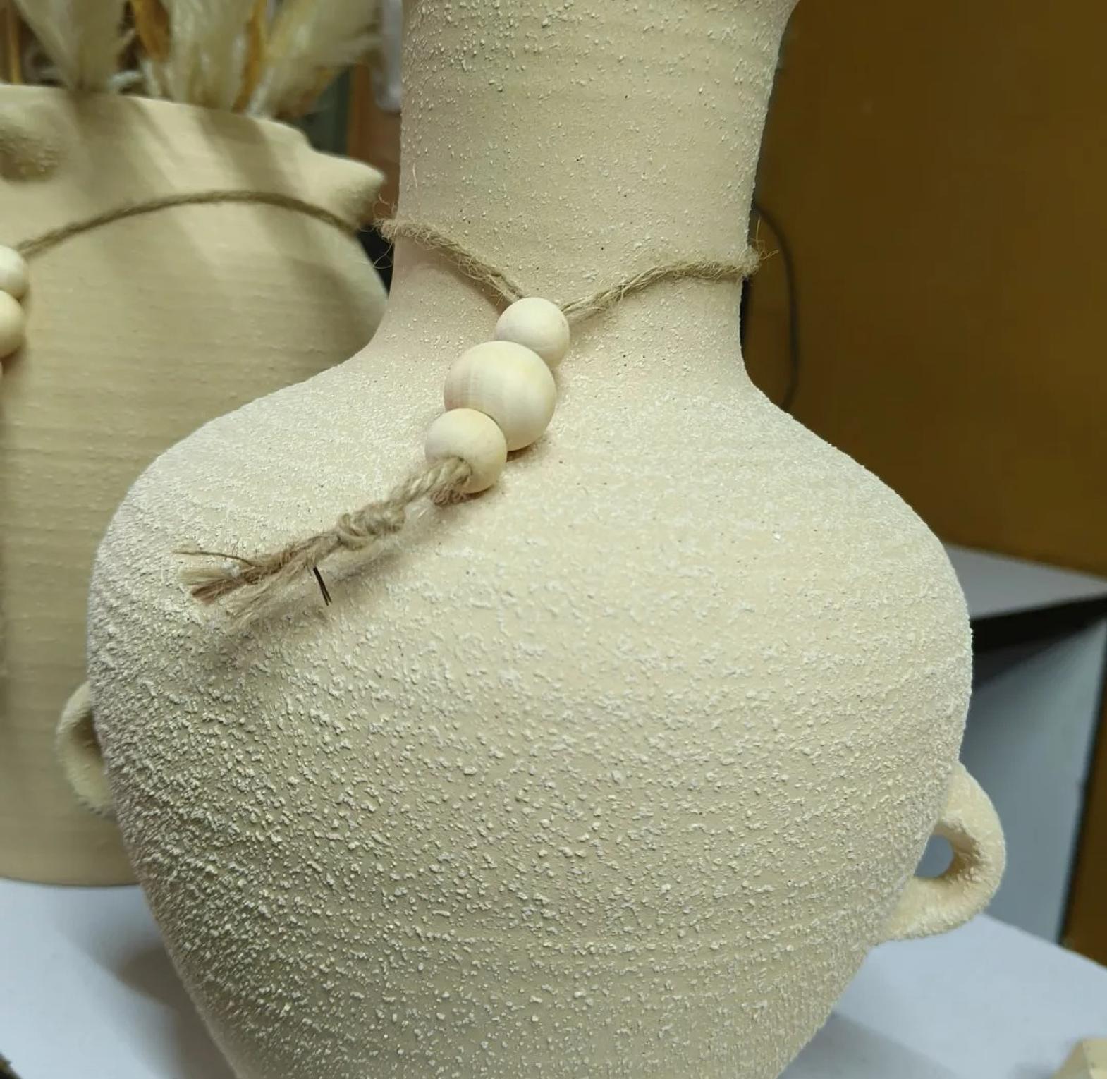 Infuse your living space with the timeless allure of antiquity with the Aegean Echoes Ceramic Vase. This exquisite indoor pot is a captivating homage to Ancient Greek vase styles, featuring a gracefully curved silhouette and distinctive dual ear handles that evoke historical charm. Crafted from high-quality ceramic, the vase boasts a unique textured finish that adds depth and character, mimicking the aged beauty of unearthed artifacts. Adorned with a simple, rustic rope and wooden beads around its slender neck, the Aegean Echoes vase perfectly blends minimalist design with bohemian and classical aesthetics. Ideal for showcasing dried botanicals, pampas grass, or simply standing alone as a sculptural art piece, it serves as a stunning focal point in living rooms, hallways, or offices. Its versatile, neutral tone seamlessly integrates with various interior design themes, from modern to rustic to Mediterranean. This ceramic pot is a must-have for those seeking ancient Greek vase replicas, textured ceramic decor, boho home accents, decorative indoor planters, and unique rustic vases.